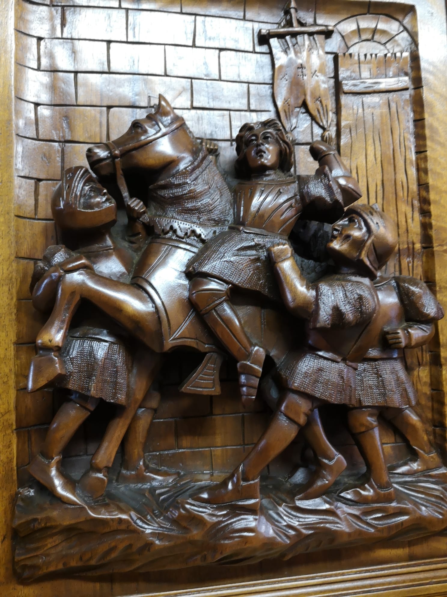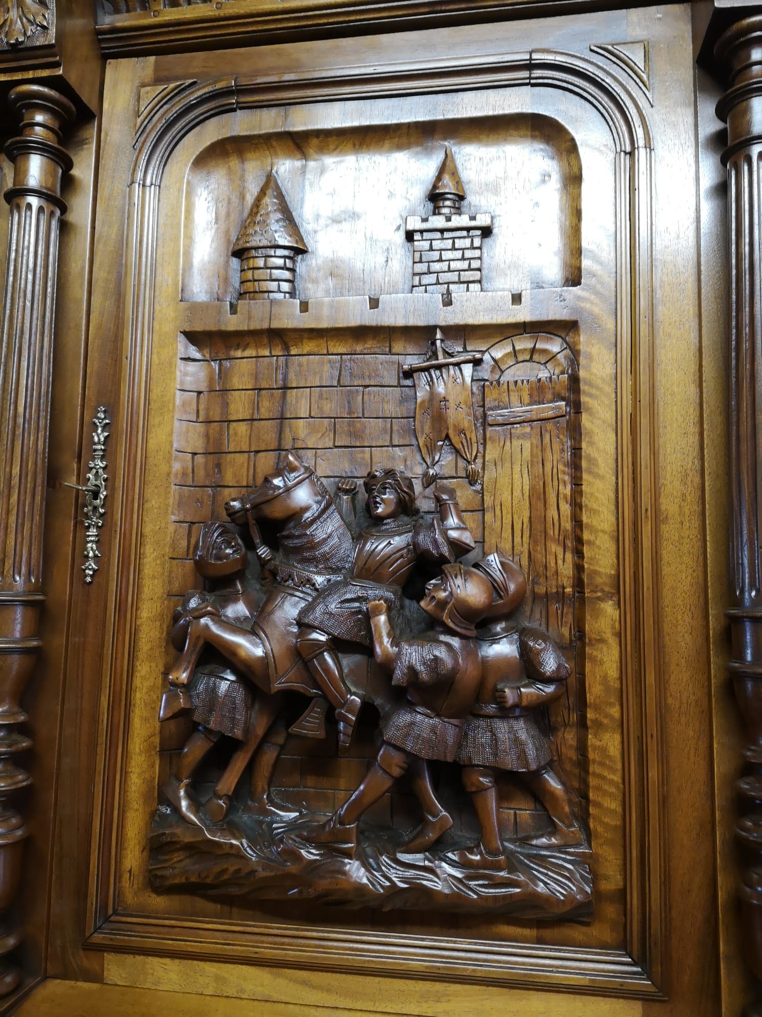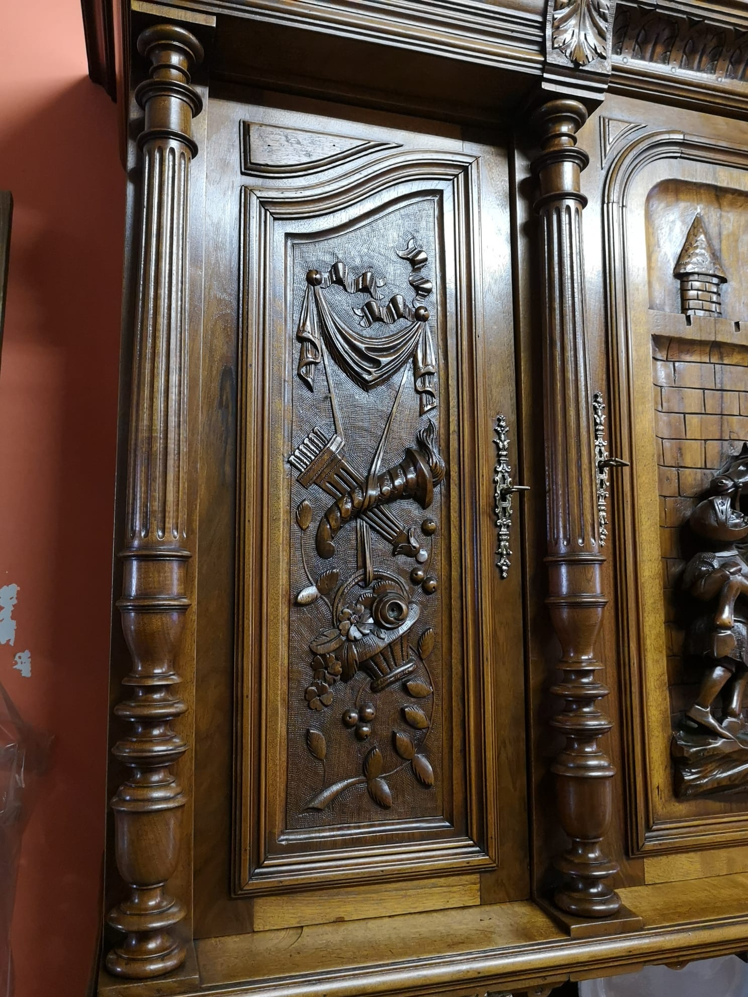 Aparador antiguo de ff S XIX – pp S XX en madera de nogal en perfecto estado, totalmente restaurado con su herraje y Tiradores originales y todas sus cerraduras funcionando.