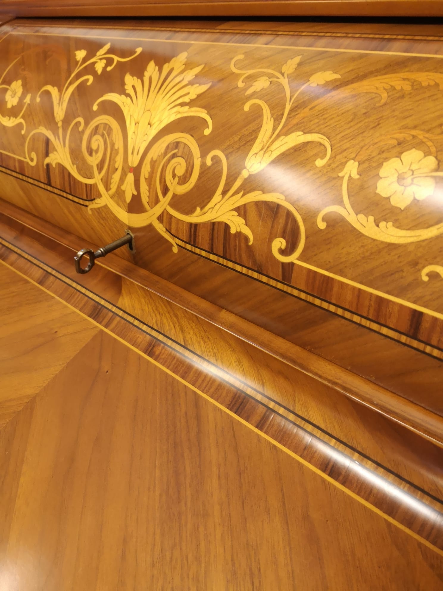 Bureau – escritorio con tapa de cilindro , marquetería, cajones y llave.