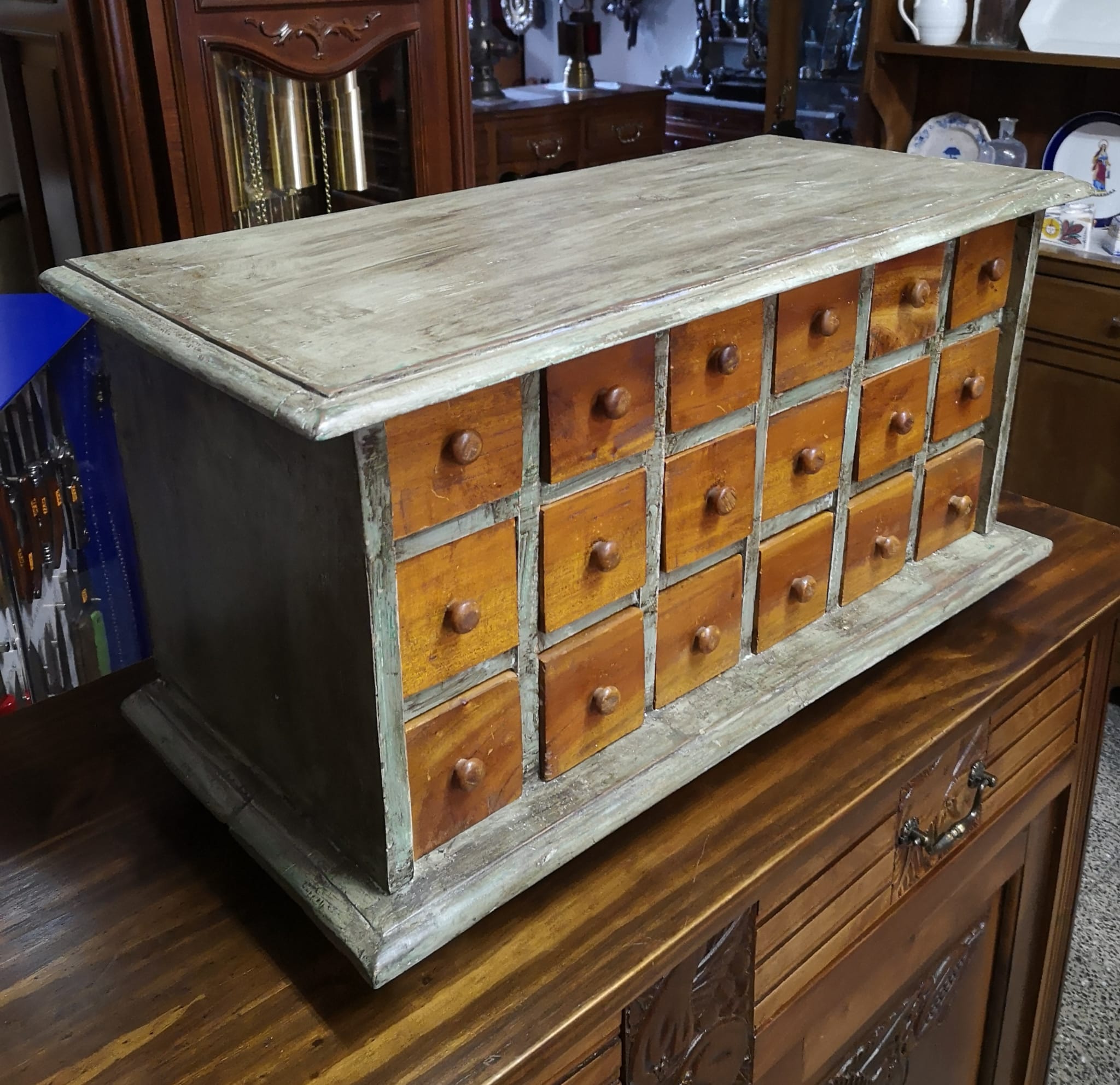 Cajonera organizador de 18 cajones en perfecto estado y muy bonita. Artículo de muebles antiguos. Categoría Cómodas – Cajonera.