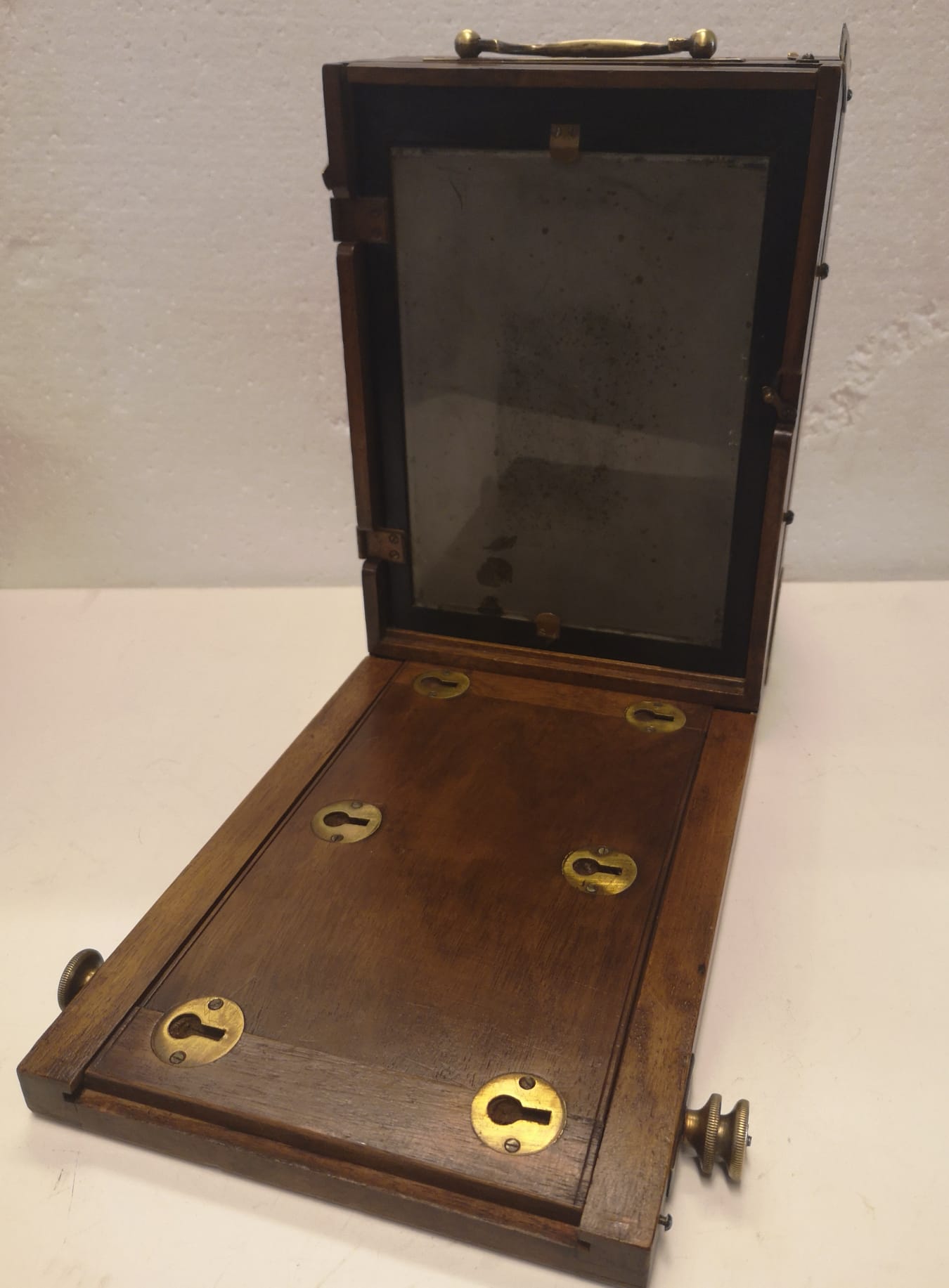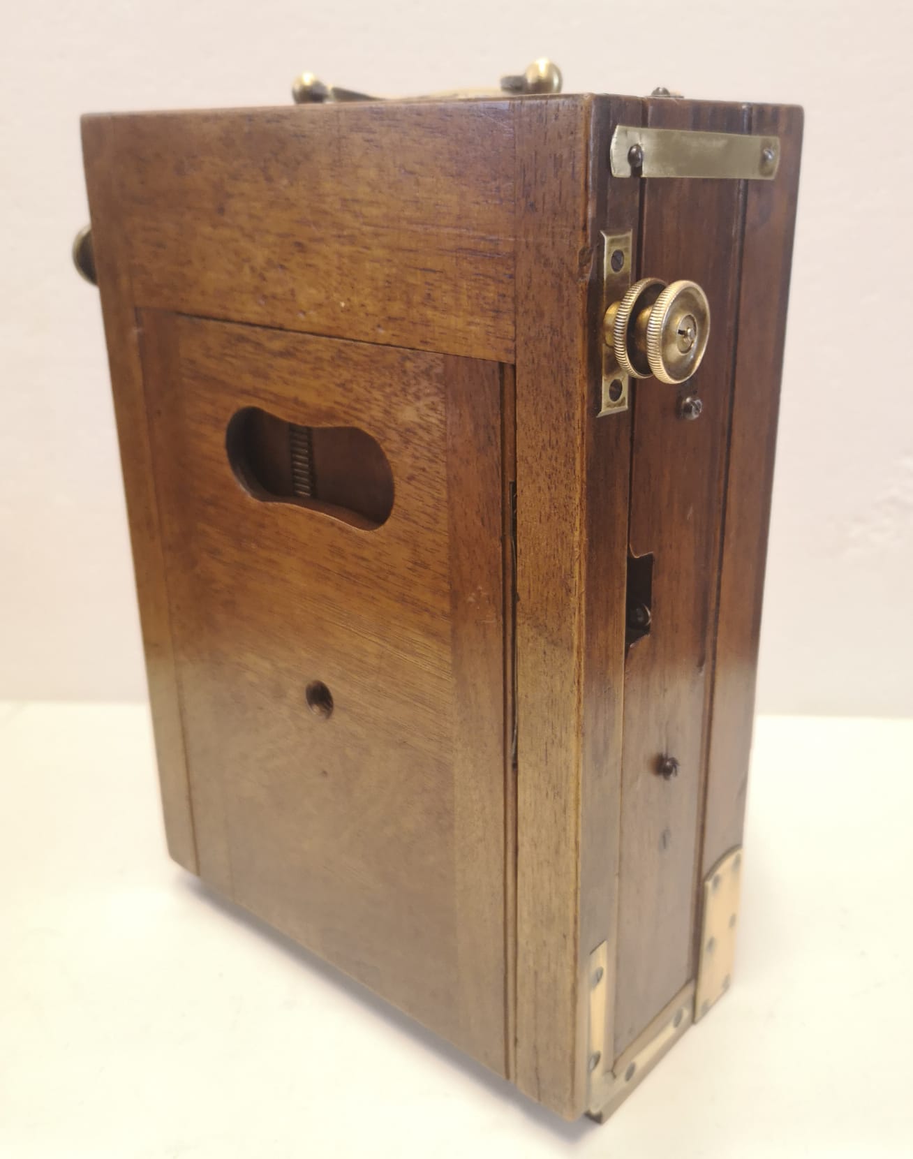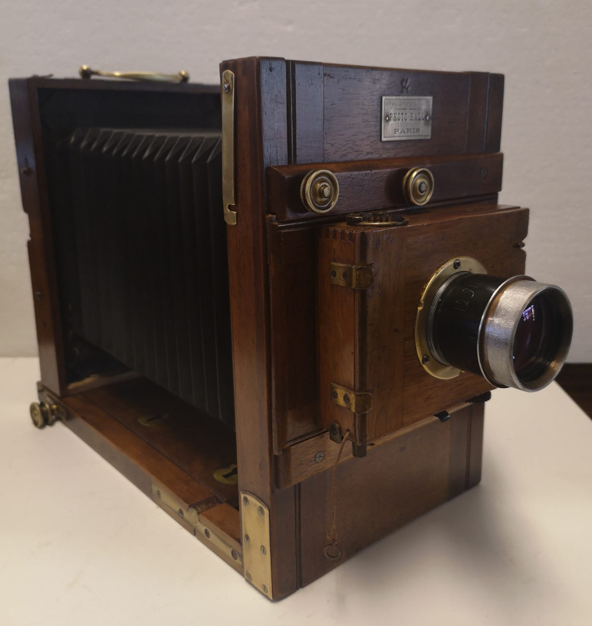 Antigua Cámara de fotos de campo fuelle de ff S XIX-pp S XX, de fabricación francesa en preciosa madera de Caoba con herrajes en latón. Se encuentra en bastante buen estado con la cortinilla y el disparador funcionando, Su fuelle también se encuentra entero.