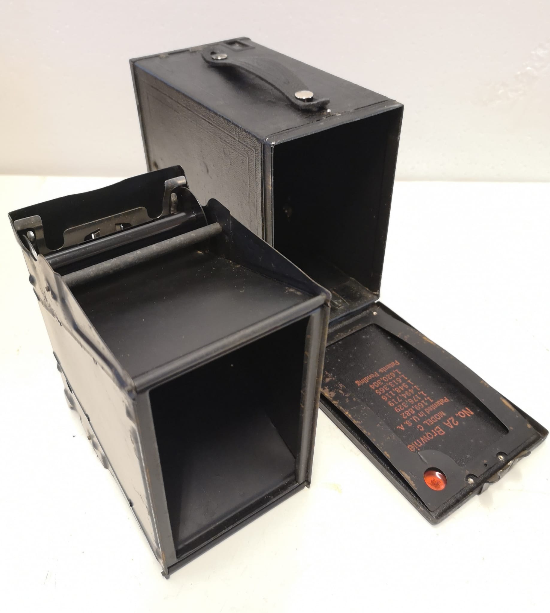 Antigua Cámara de fotos de cajón Kodad Brownie 2A, fabricada entre 1911-1924. Funcionando.