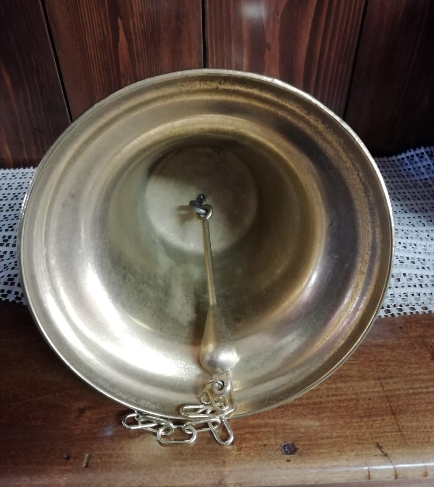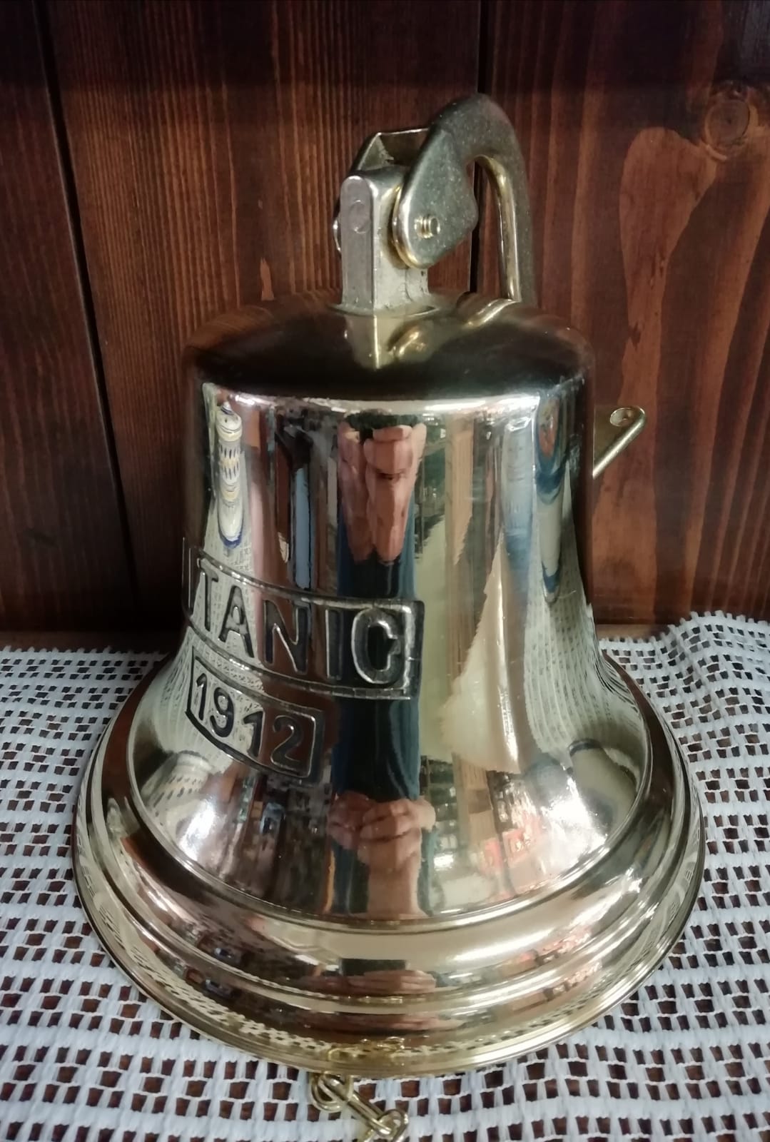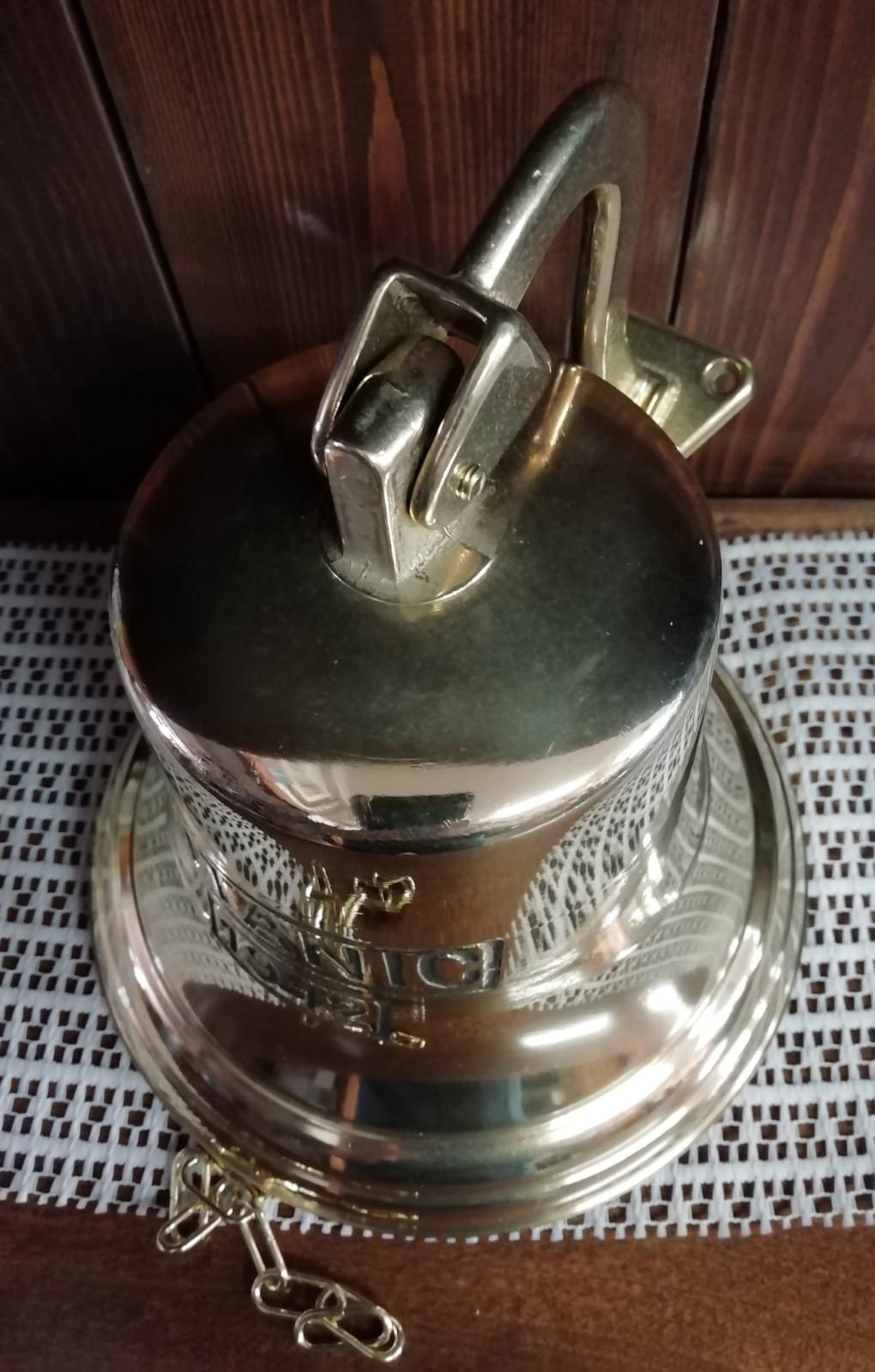 Campana bronce con inscripción TITANIC 1912 con soporte basculante y cadena en el badajo para el toque.