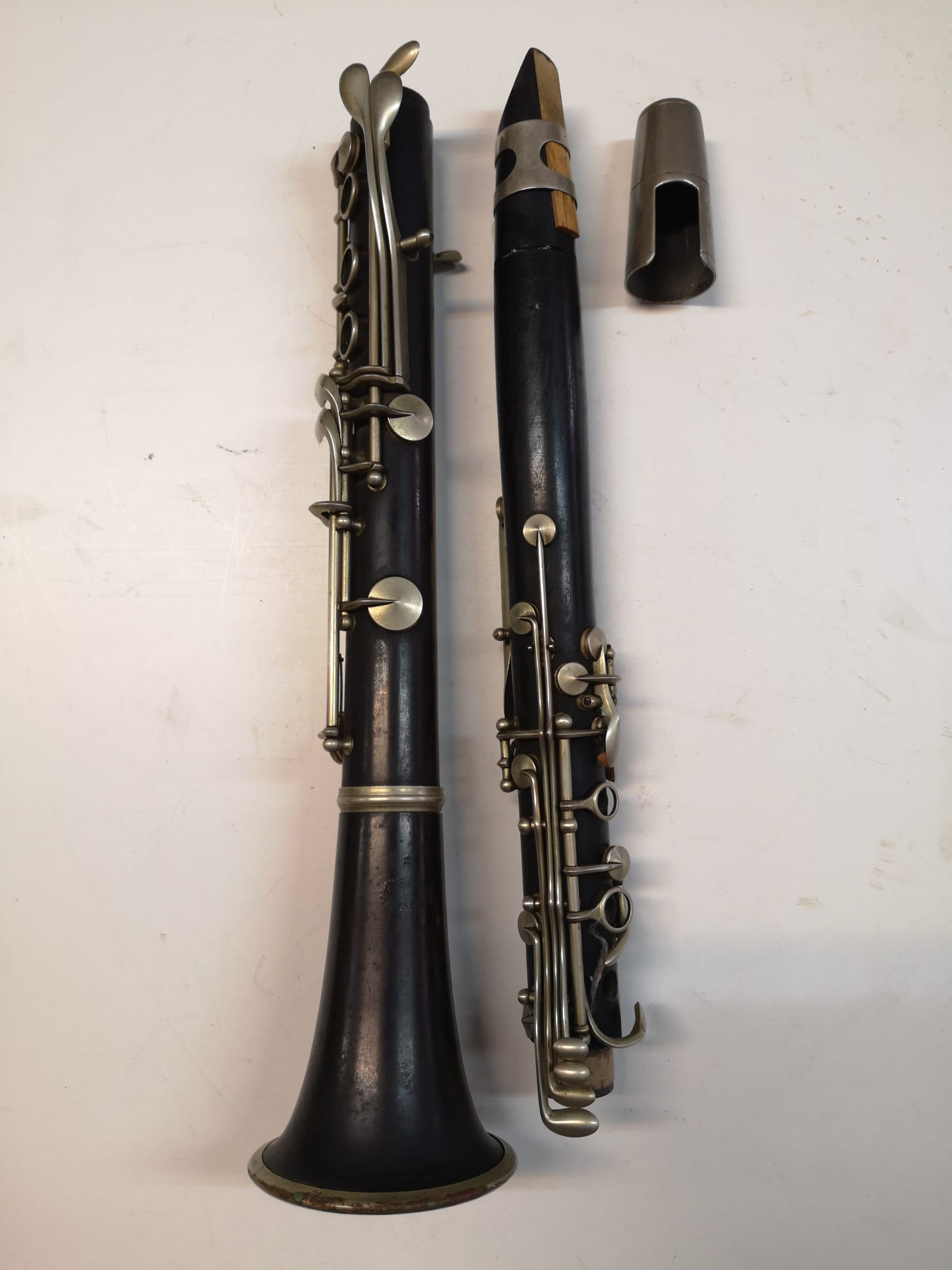 Clarinete antiguo en madera de Ébano, aparentemente en bastante buen estado general, no somos entendidos.
