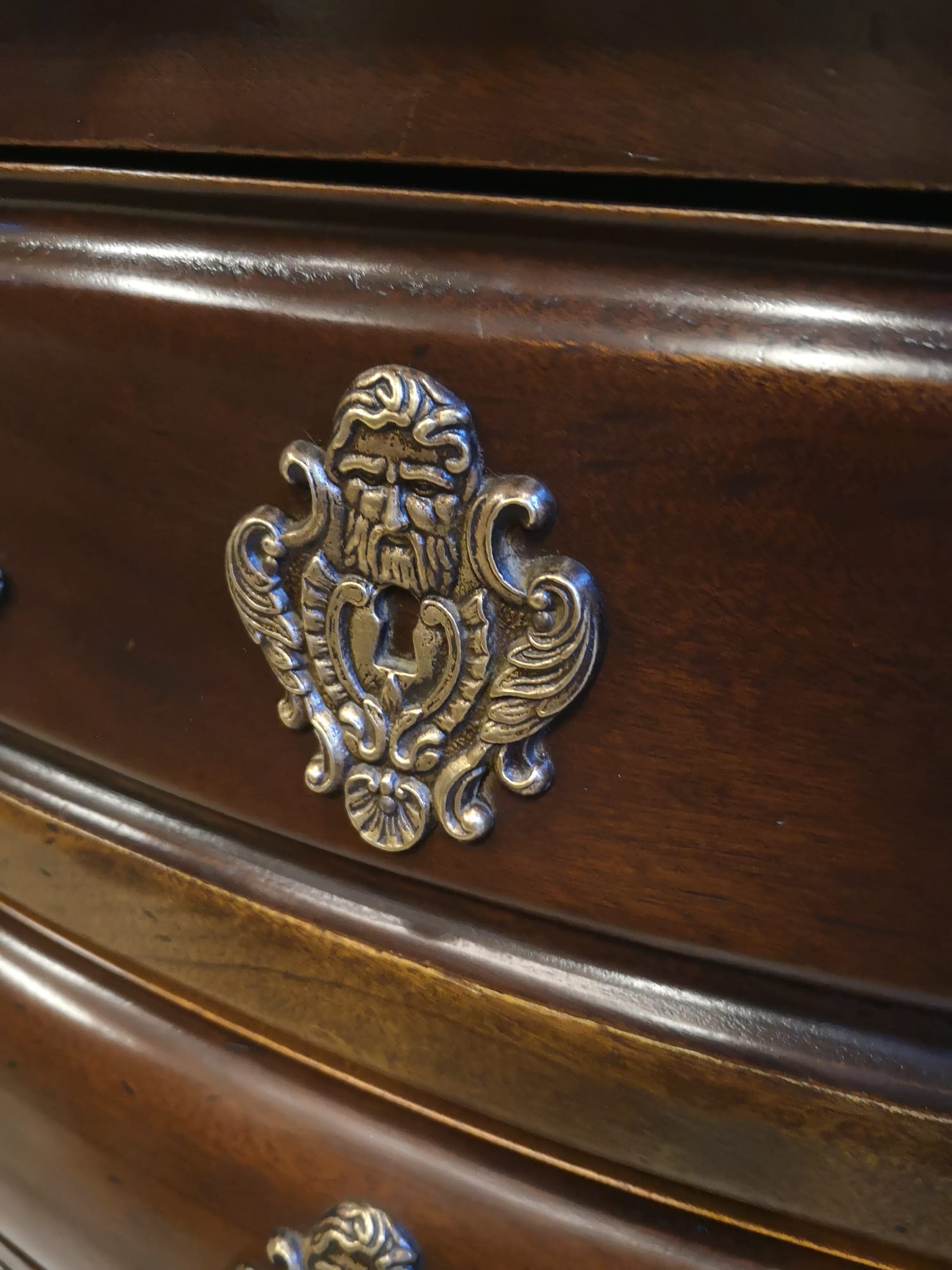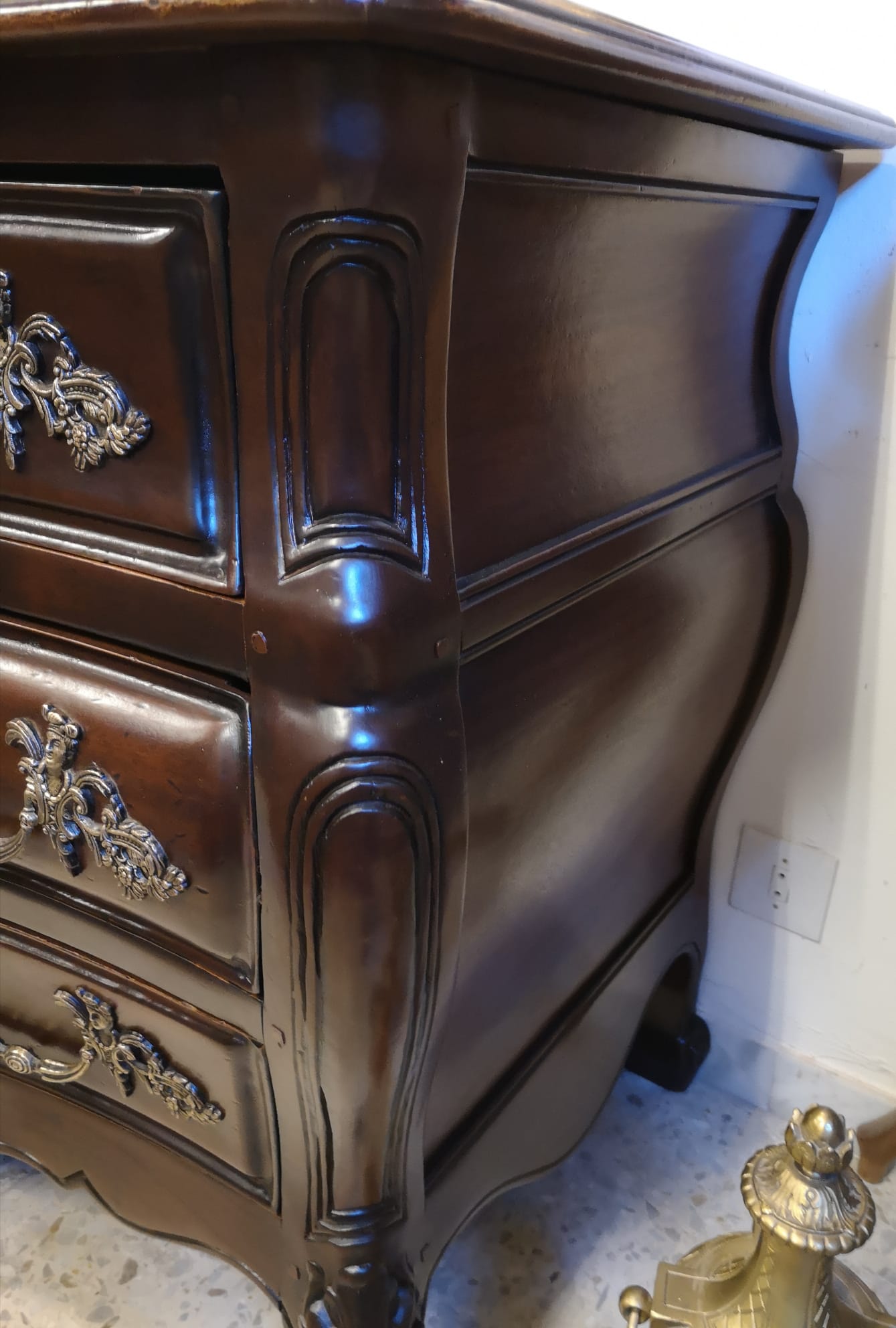 Cómoda bombé estilo Luis XV en madera de Sapeli