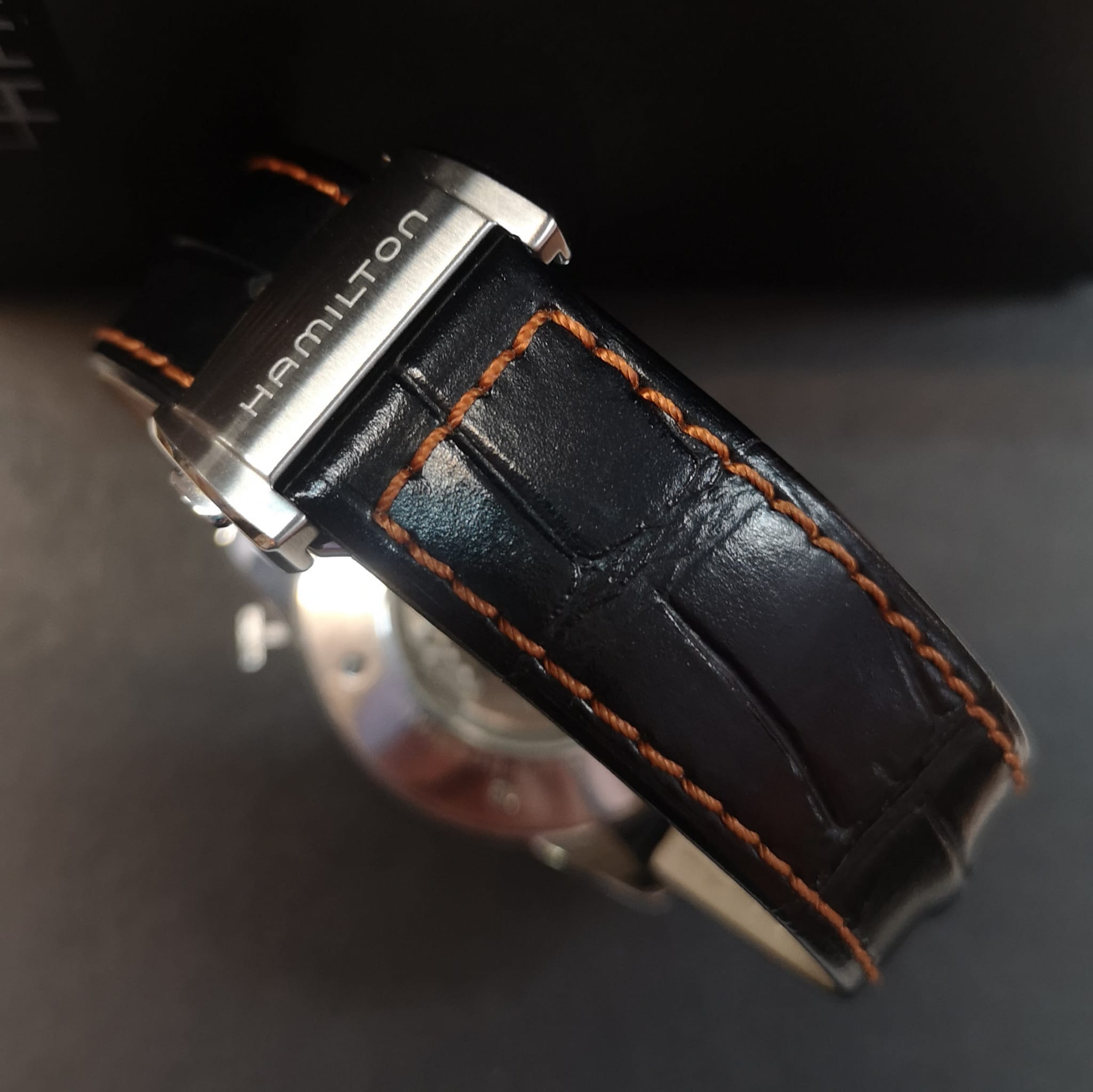 Movimiento: El H-22 es un movimiento automático que reafirma su estilo por su pequeño su esfera de segundos asimétrica a las 8 en punto. Con función de fecha y una reserva de 42 h.