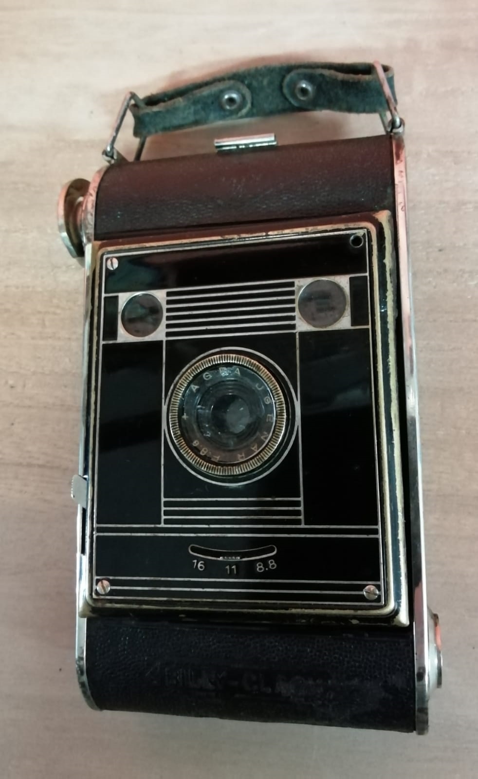 Cámara fotos fuelle antigua Agfa fabricada en Alemania en 1936 de claro diseño Art deco.