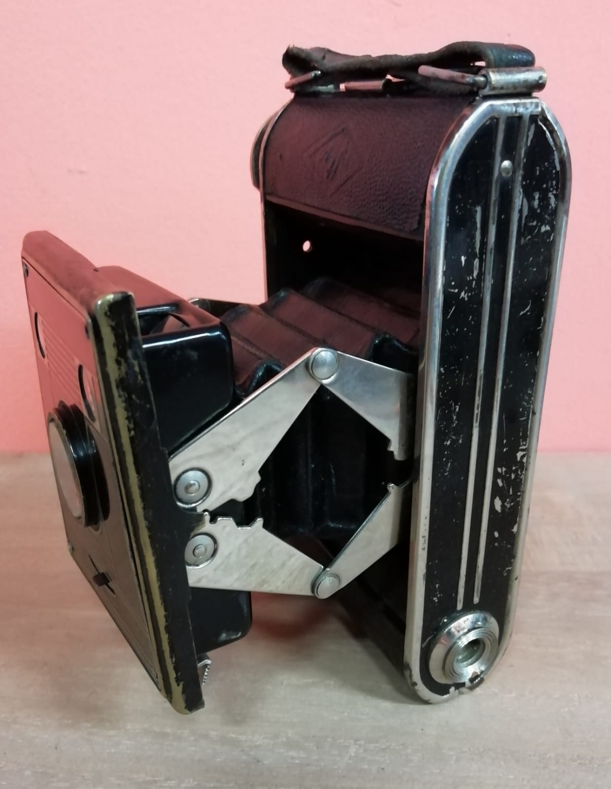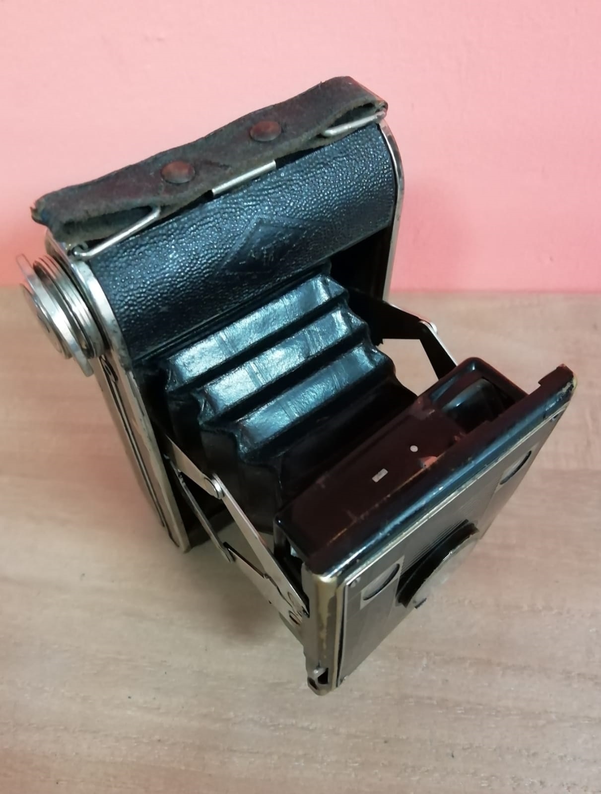 Cámara fotos fuelle antigua Agfa fabricada en Alemania en 1936 de claro diseño Art deco, muy bonita y diferente