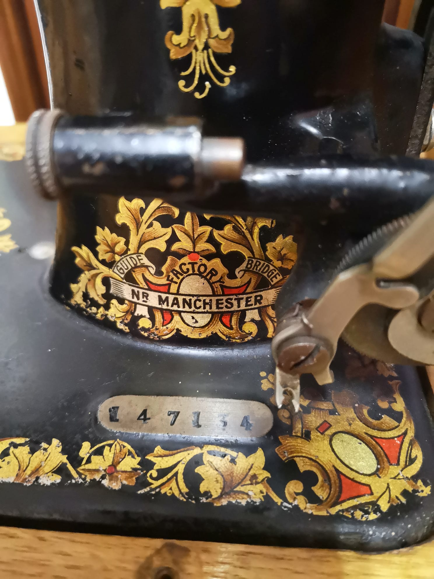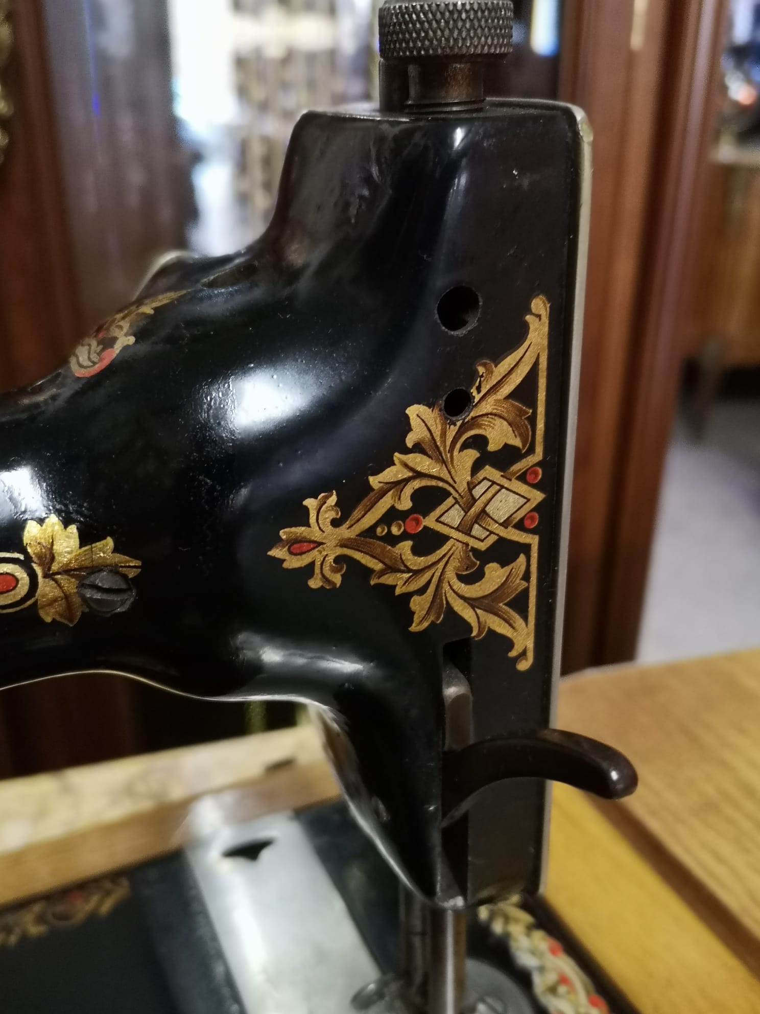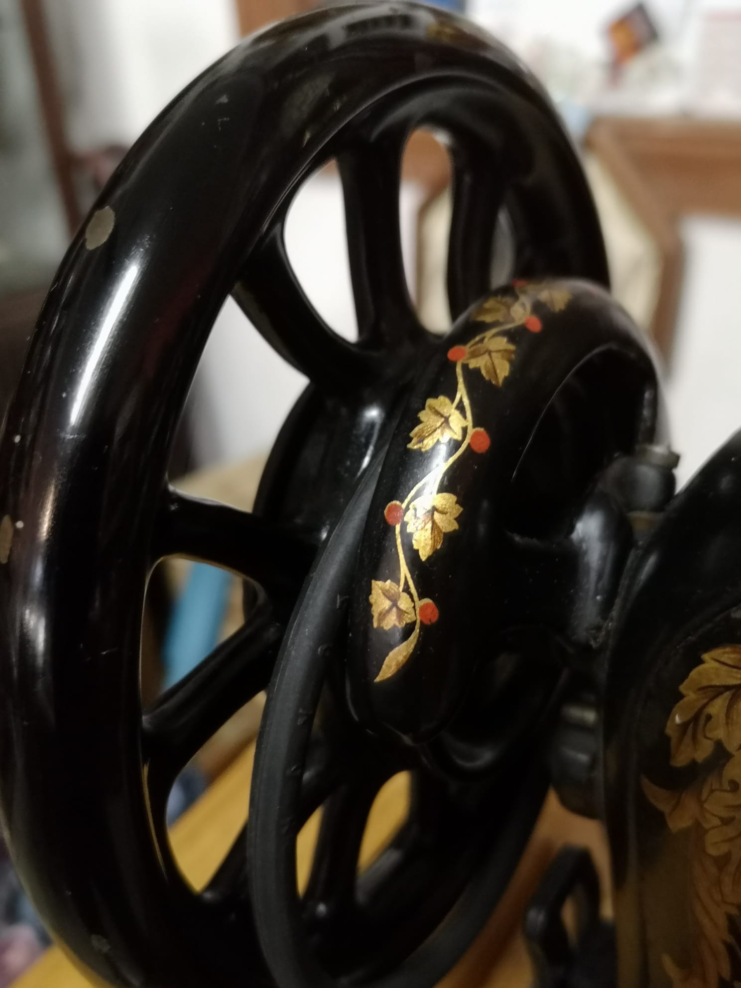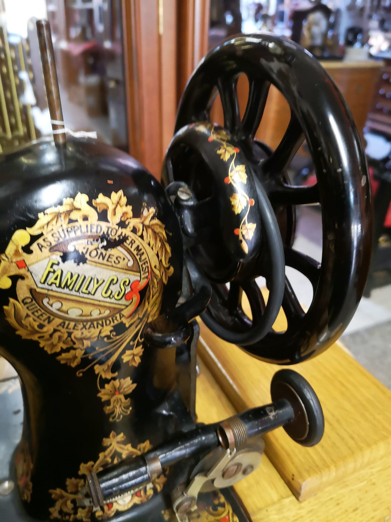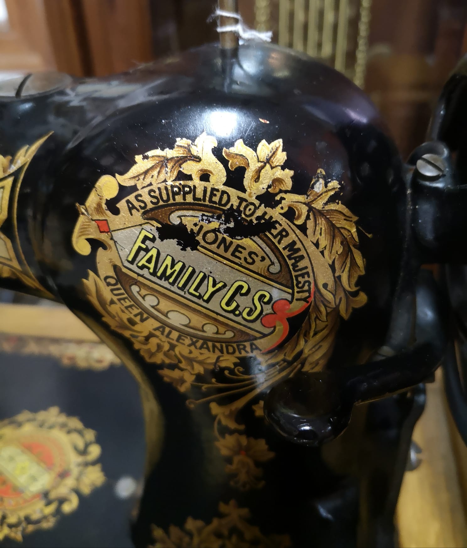 Máquina de coser inglesa Jones, modelo Family., año 1915-20, en excelente estado de conservación, con todos sus dibujos y logotipos en perfecto estado.