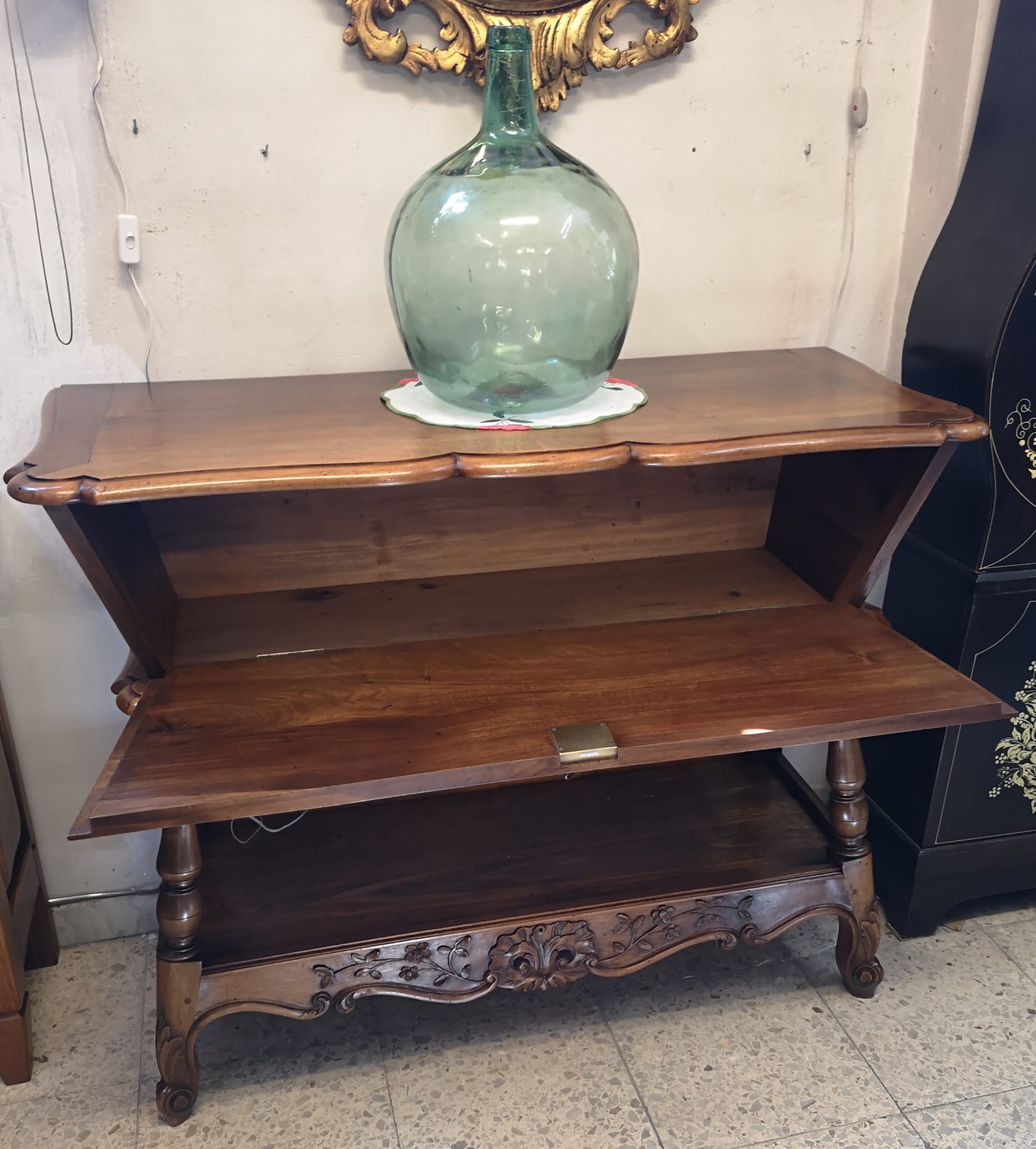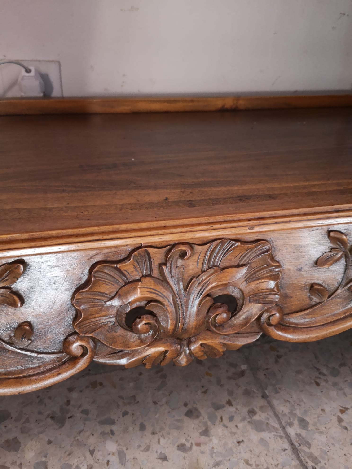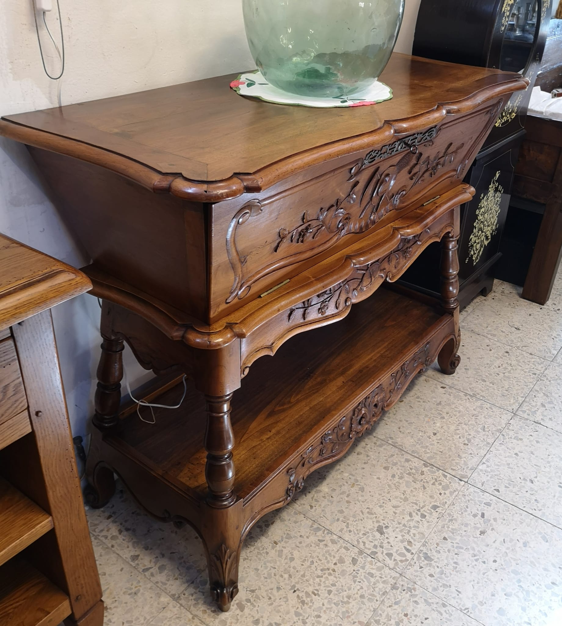 Antigua Masera o panera S XIX en madera de nogal con puerta abatible. Tallados detalles relacionados como el trigo, la guadaña y el sombrero.