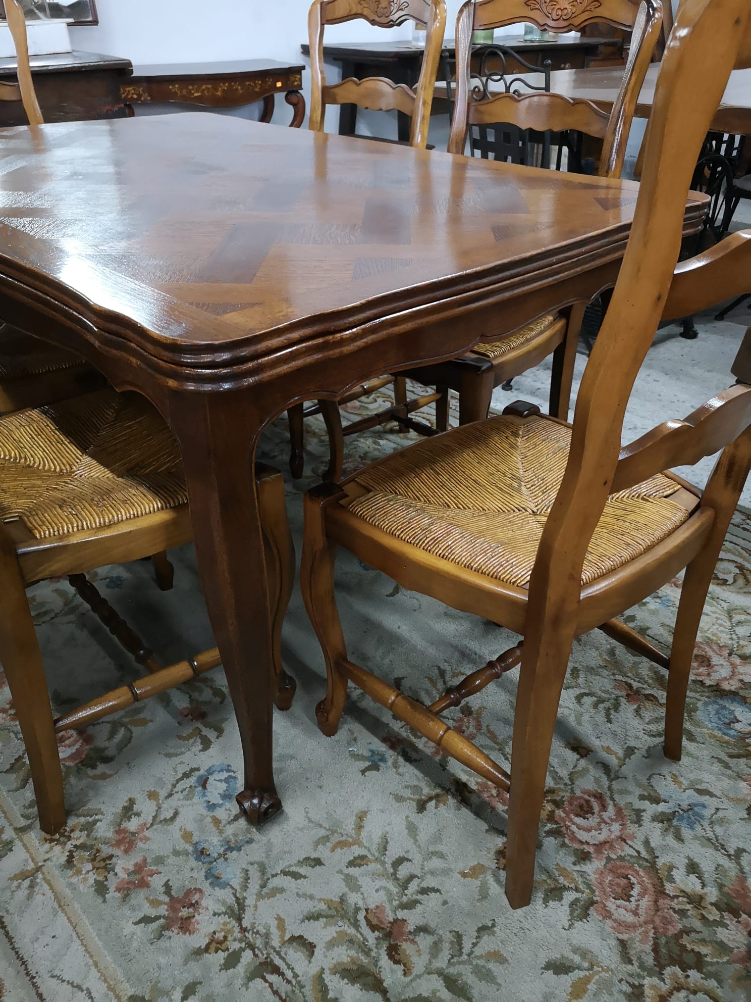 Mesa extensible en madera de roble más 6 sillas estilo Luis XV
