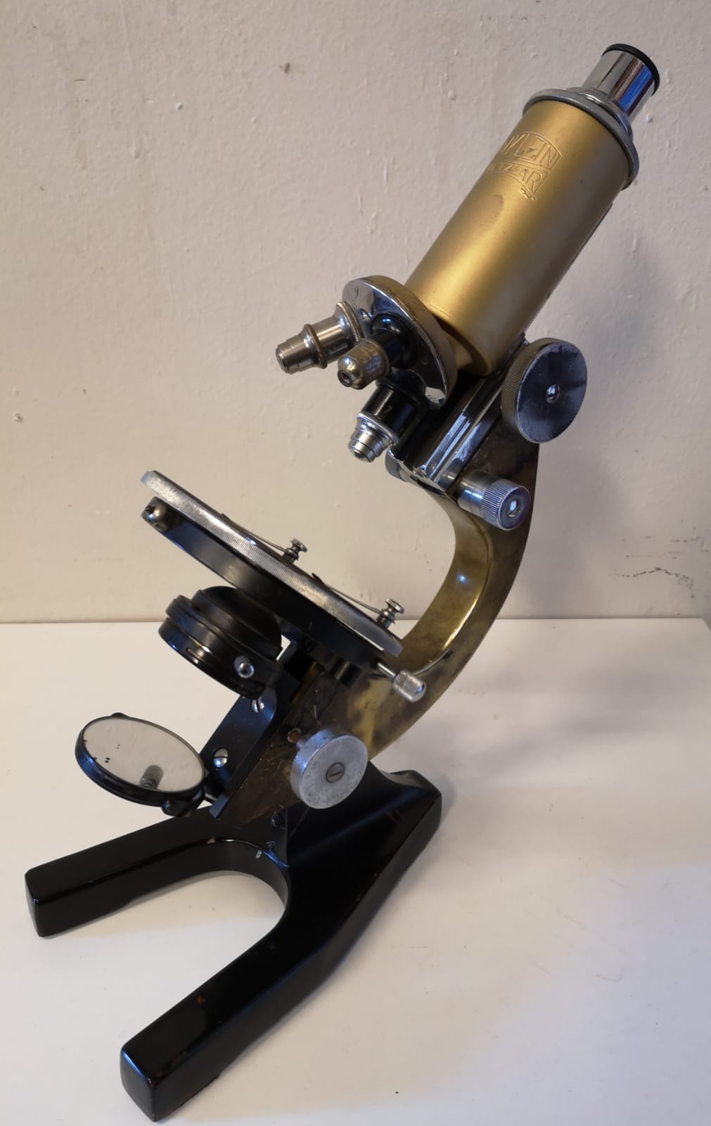Microscopio alemán de revolver W. KLEIN WETZLAR de la primera mitad del S XX. Buen estado.