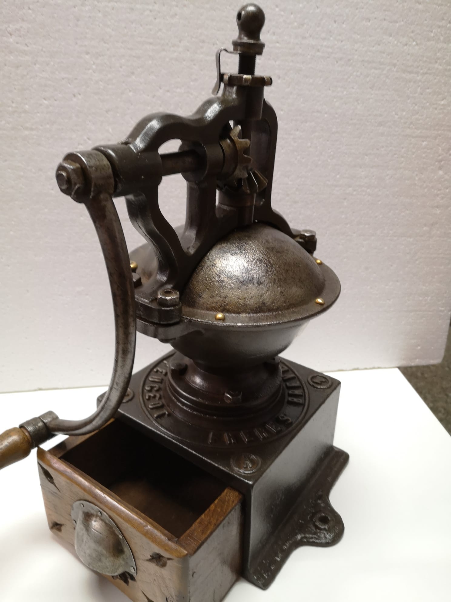 Molinillo antiguo Peugeot nº 1, grande, de comercio, con cajon en madera. Perfecto estado.