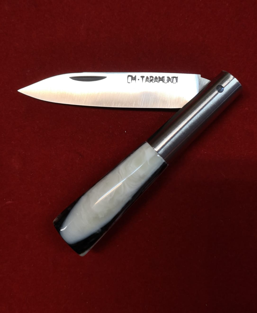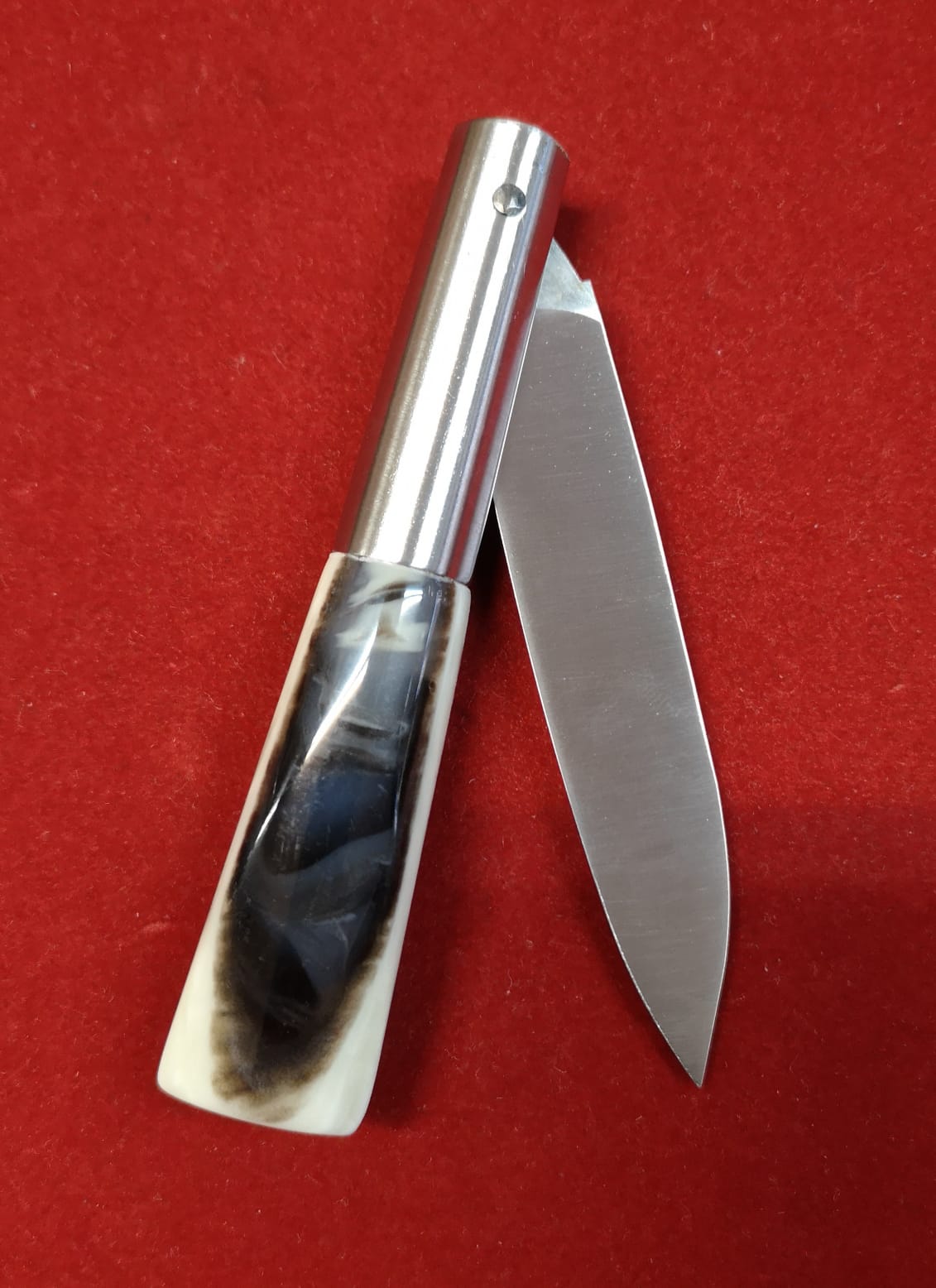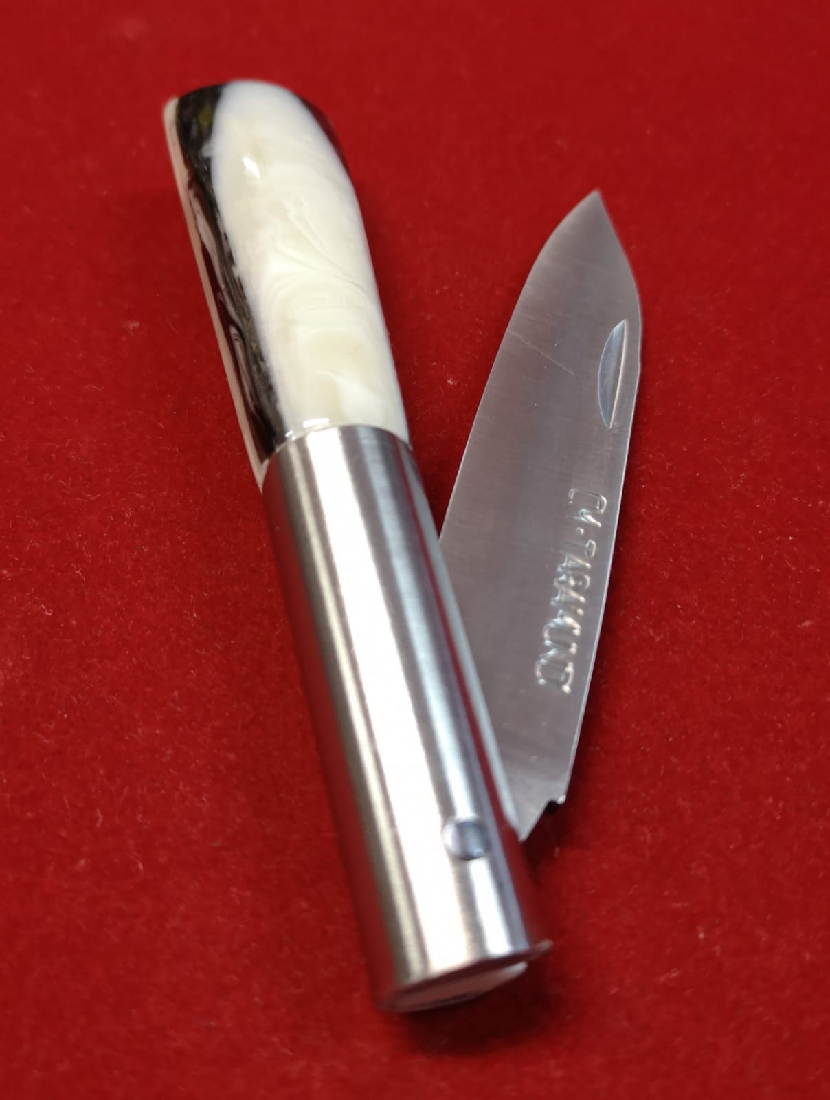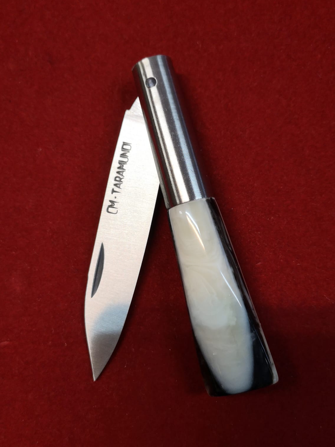 Navaja Artesana de Taramundi, Asturias, realizada manualmente por maestro artesano Carlos Mom, firmada CM en su hoja de 8 cm.