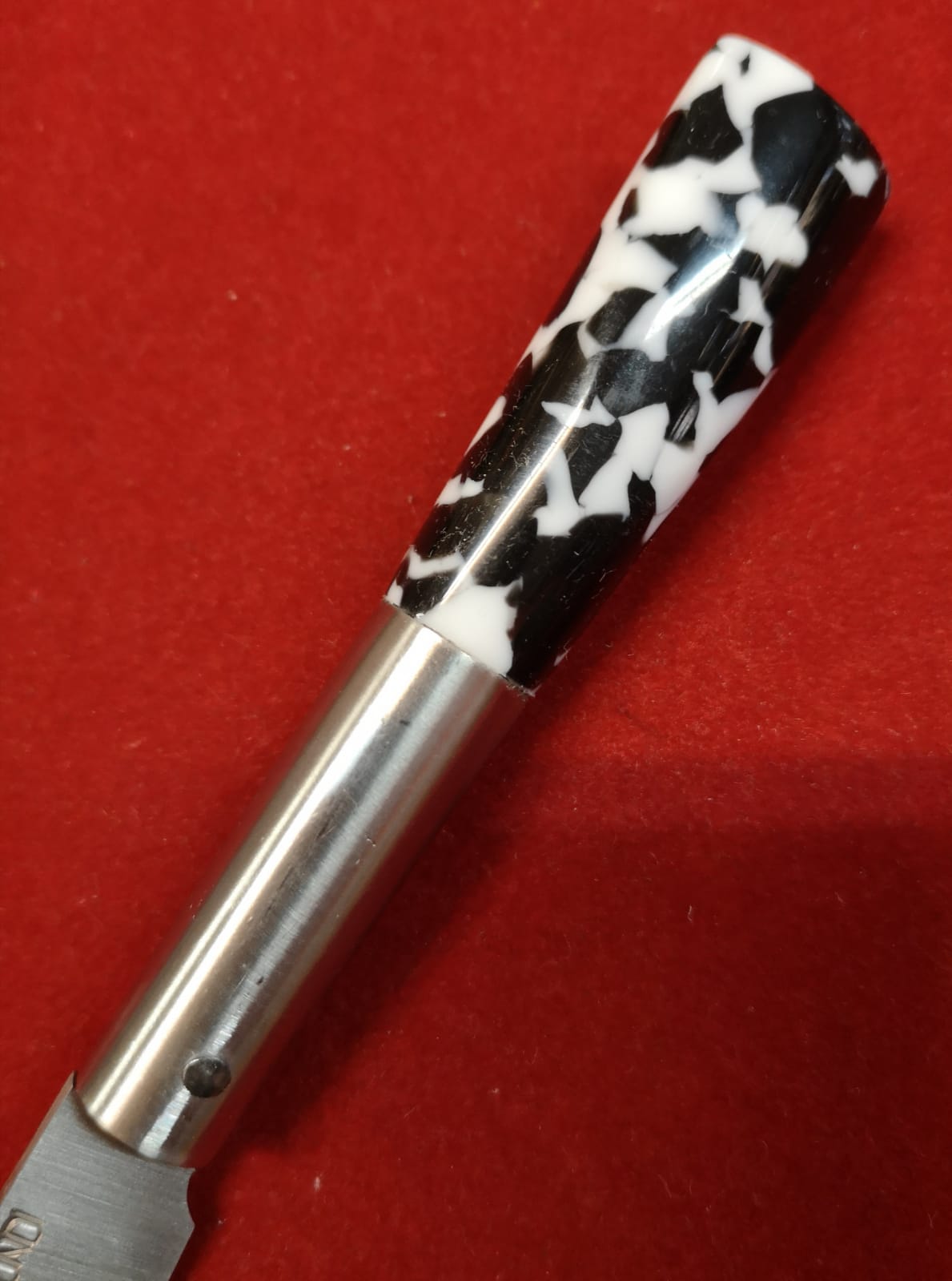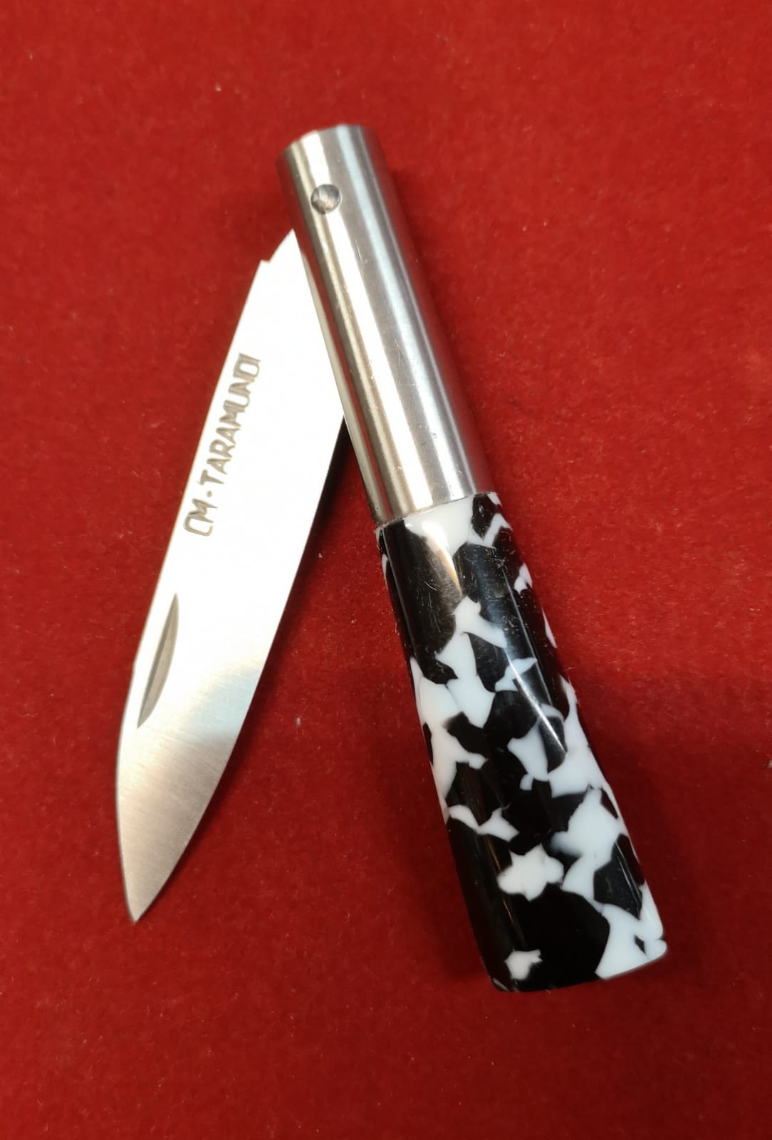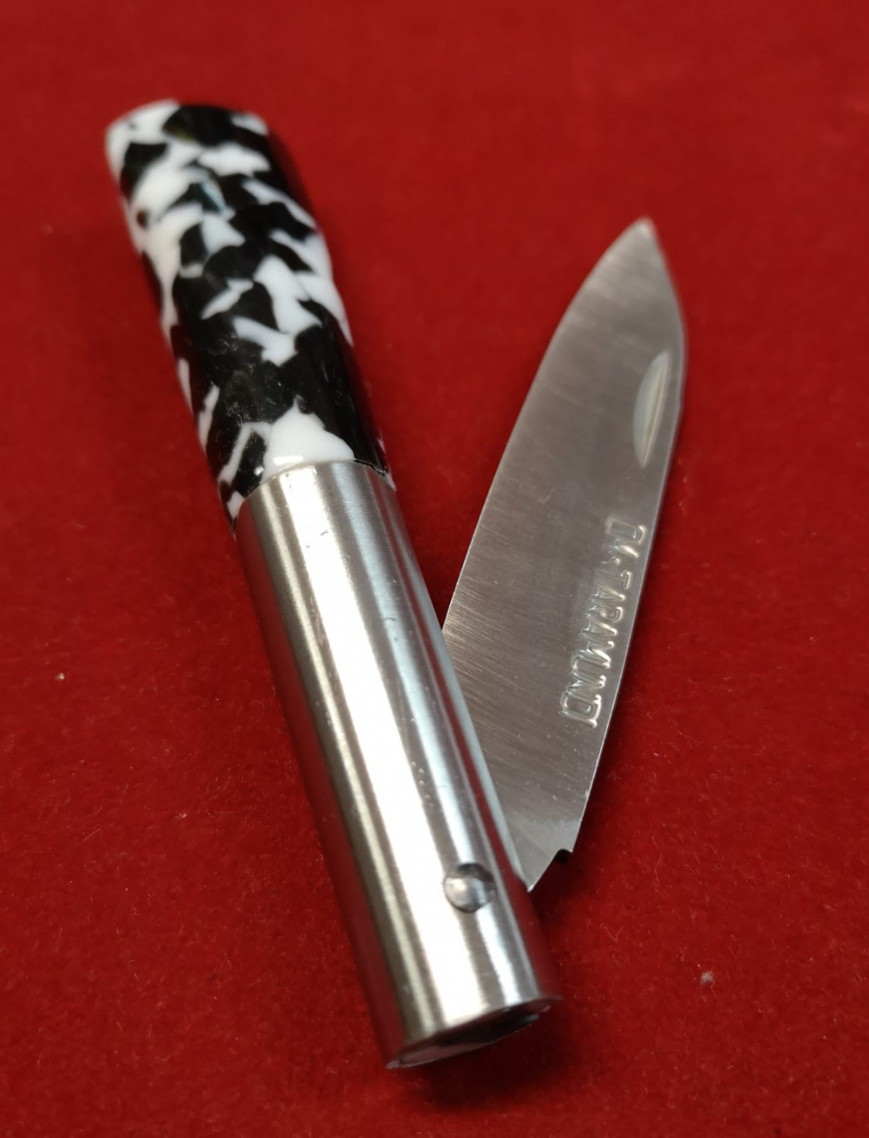 Navaja Artesana de Taramundi, Asturias, realizada manualmente por maestro artesano Carlos Mom, firmada CM en su hoja de 8 cm.