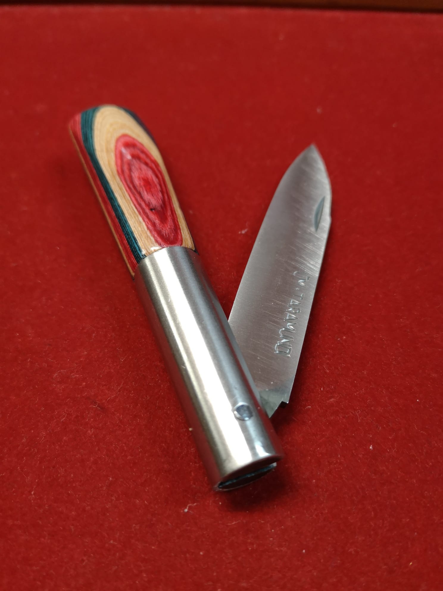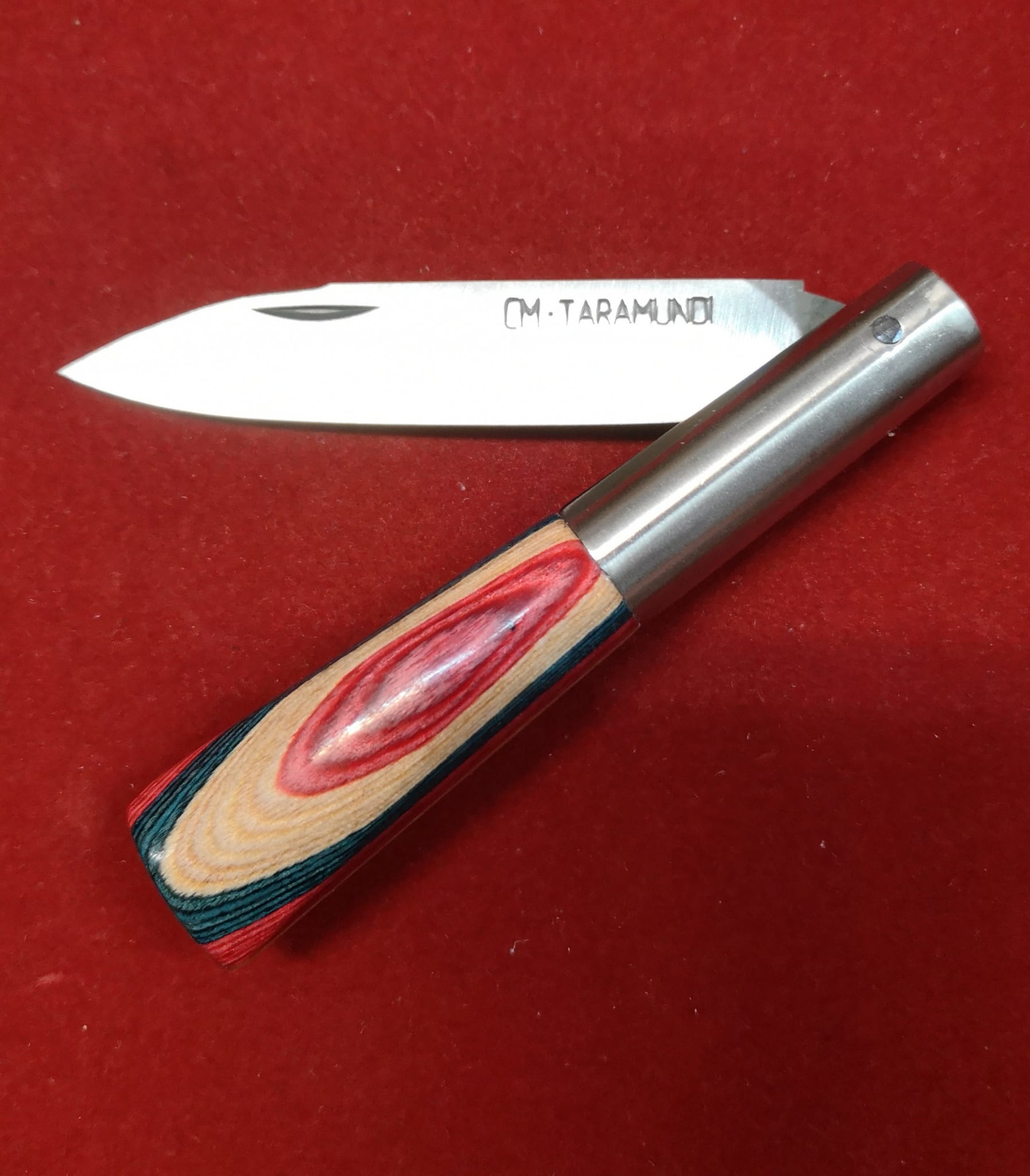 Navaja Artesana de Taramundi, Asturias, realizada manualmente por maestro artesano Carlos Mom, firmada CM en su hoja de 8 cm.