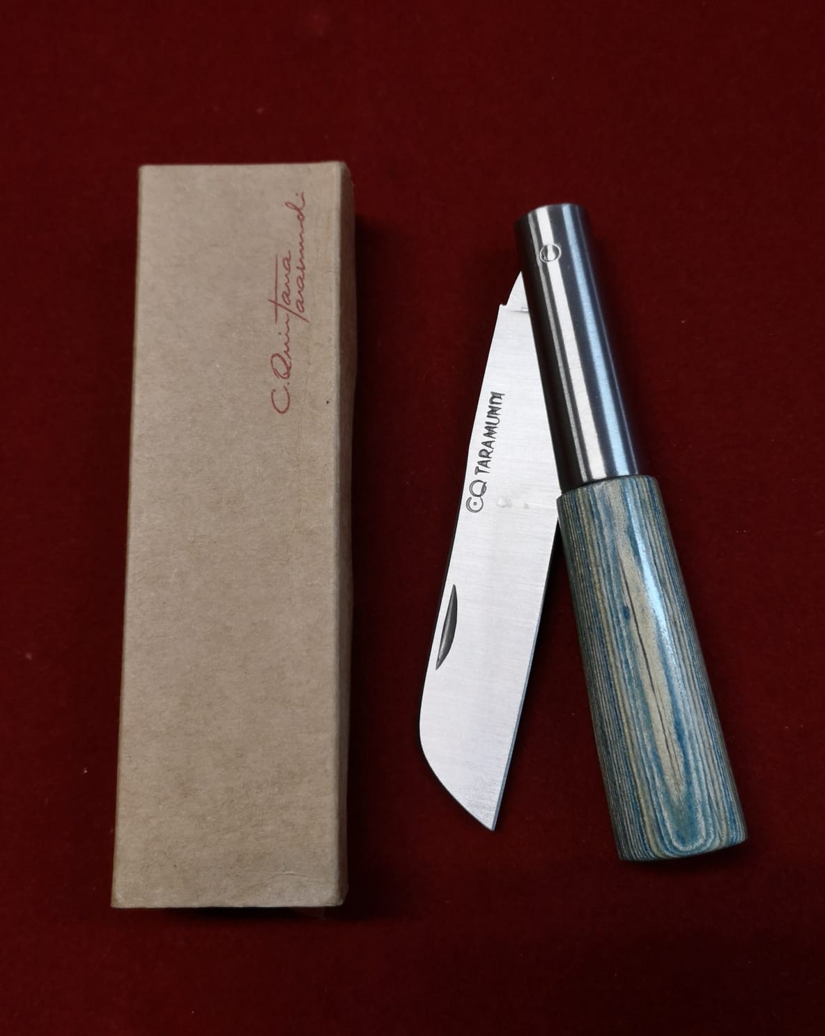 Navaja Artesana de Taramundi, Asturias, realizada manualmente por maestro artesano Carlos Quintana, firmada CQ en su hoja de 8 cm con Sistema de BLOQUEO.