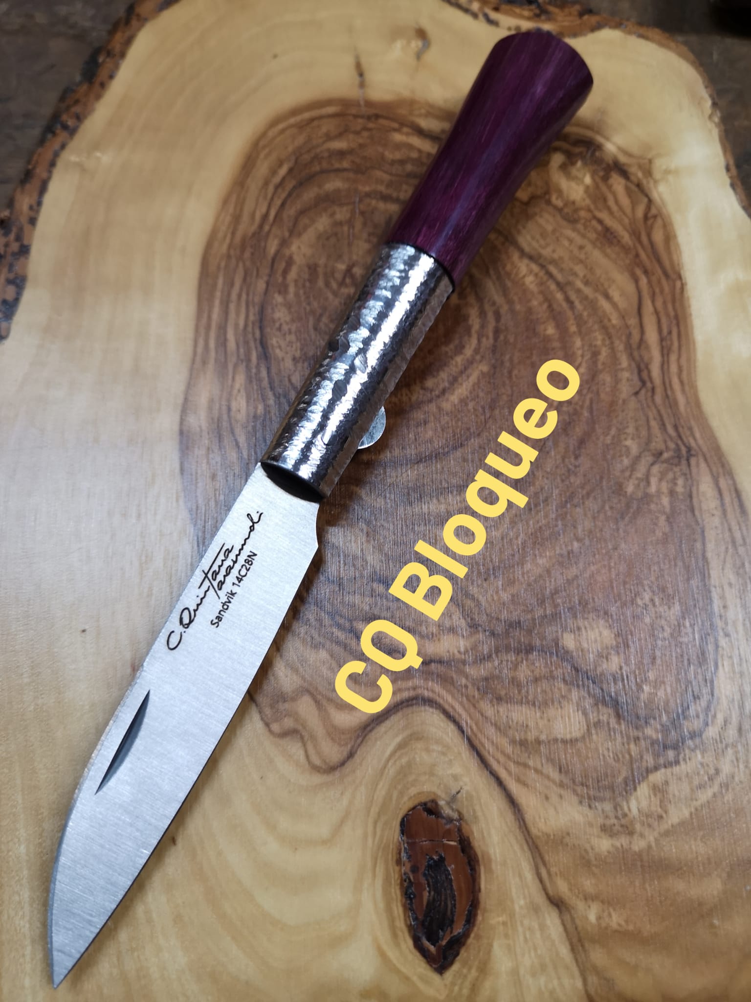 Navaja artesana de Taramundi, Asturias, realizada manualmente por maestro artesano Carlos Quintana, firmada CQ.