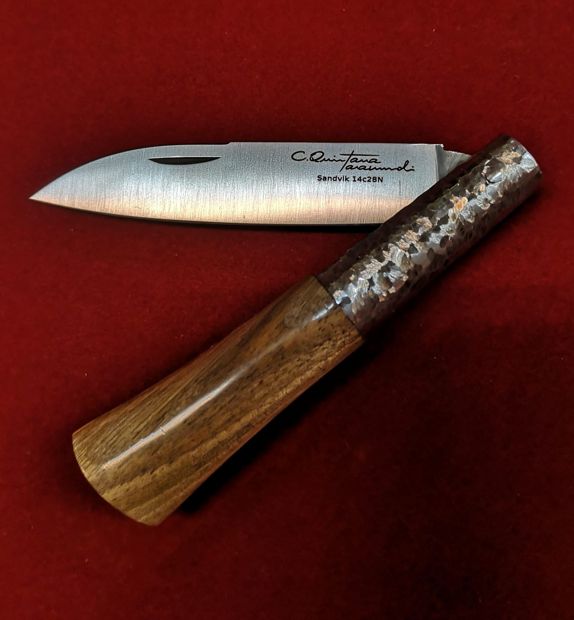 Navaja Artesana de Taramundi, Asturias, realizada manualmente por maestro artesano Carlos Quintana, firmada CQ en su hoja de 8,2 cm con sistema de BLOQUEO.