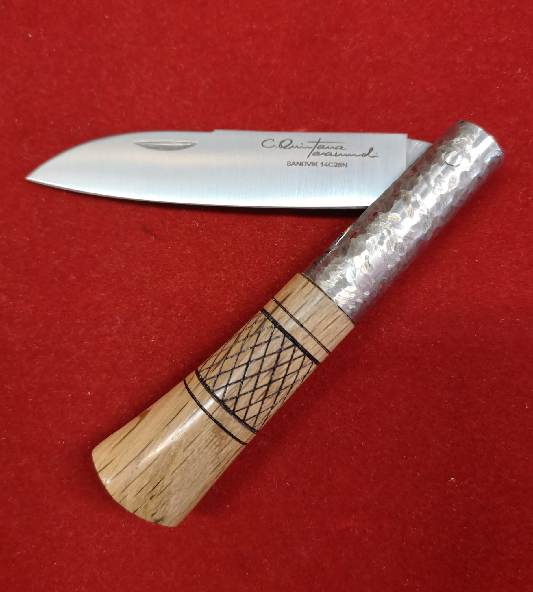 Navaja Artesana de Taramundi, Asturias, realizada manualmente por maestro artesano Carlos Quintana, firmada CQ en su hoja de 8,2 cm con sistema de BLOQUEO.