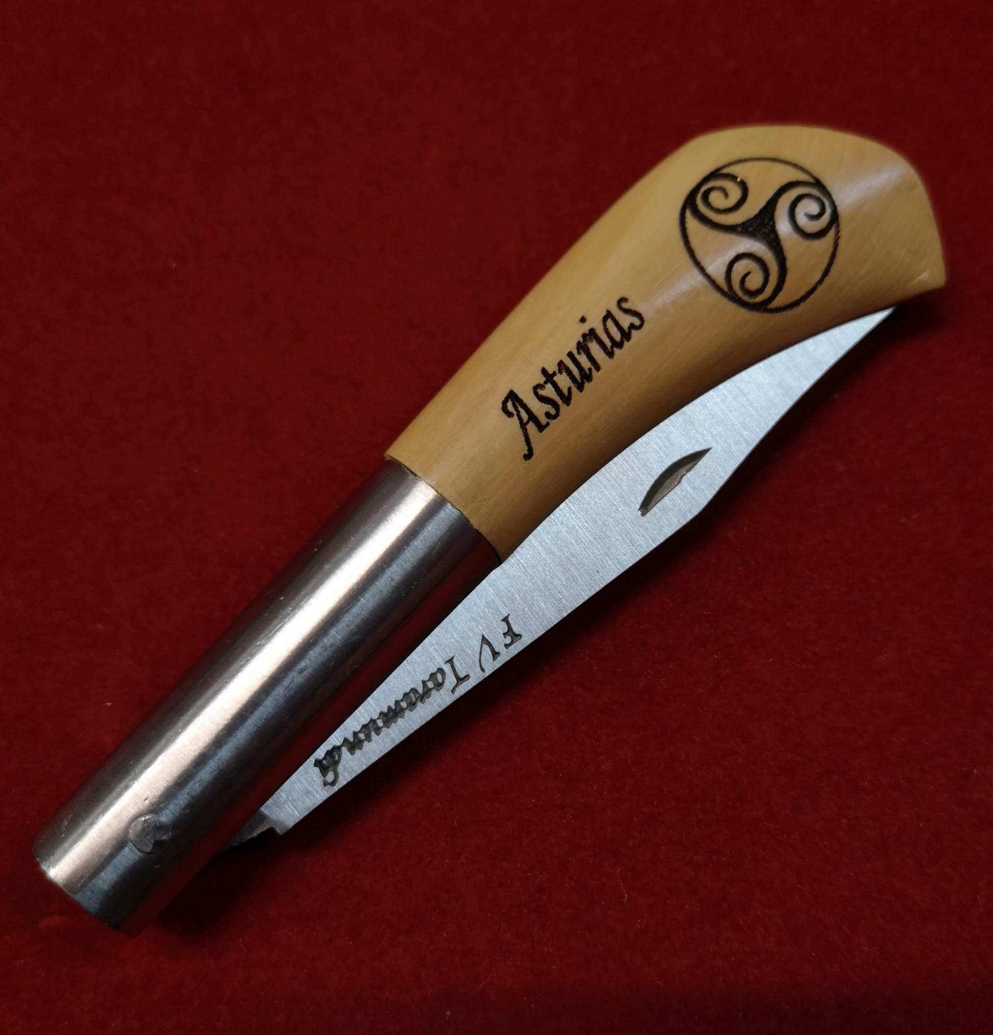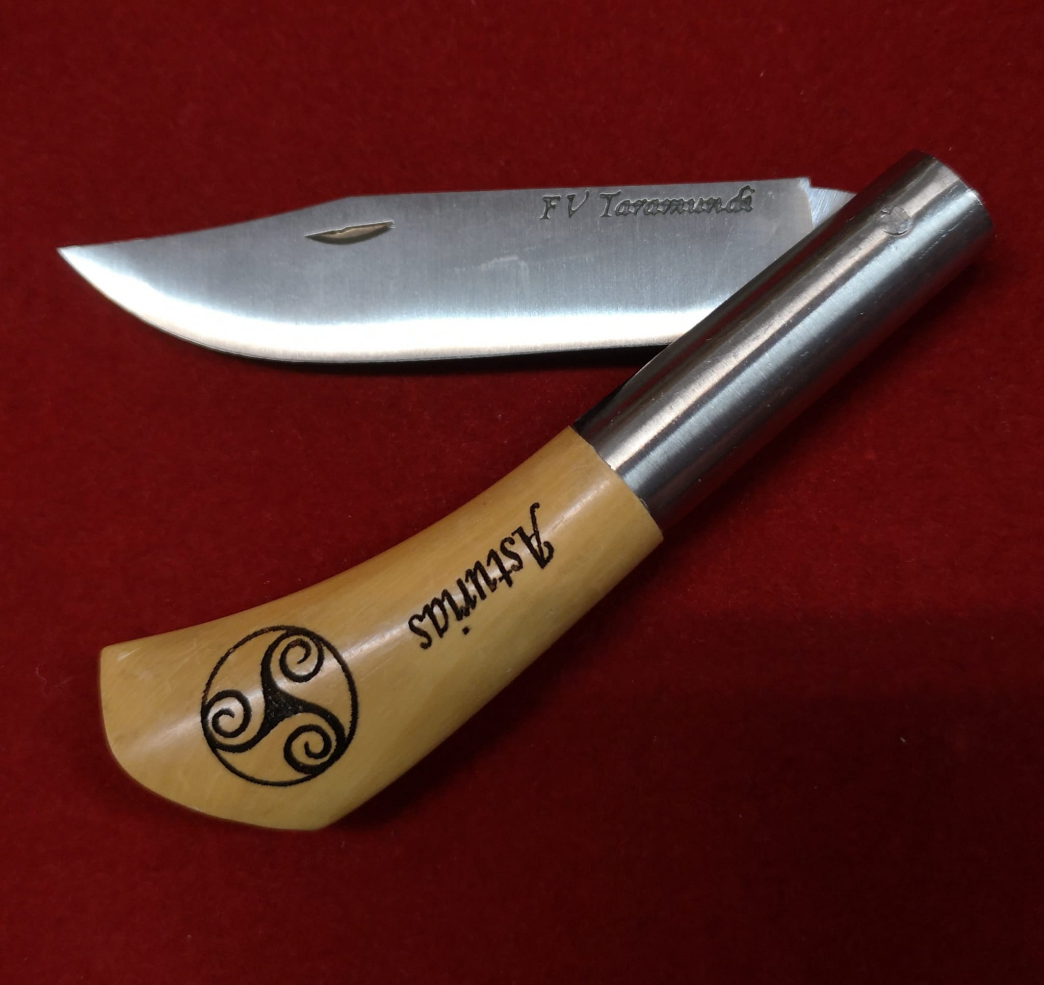 Mango en madera de boj con pirograbado Asturias y trisquel celta.