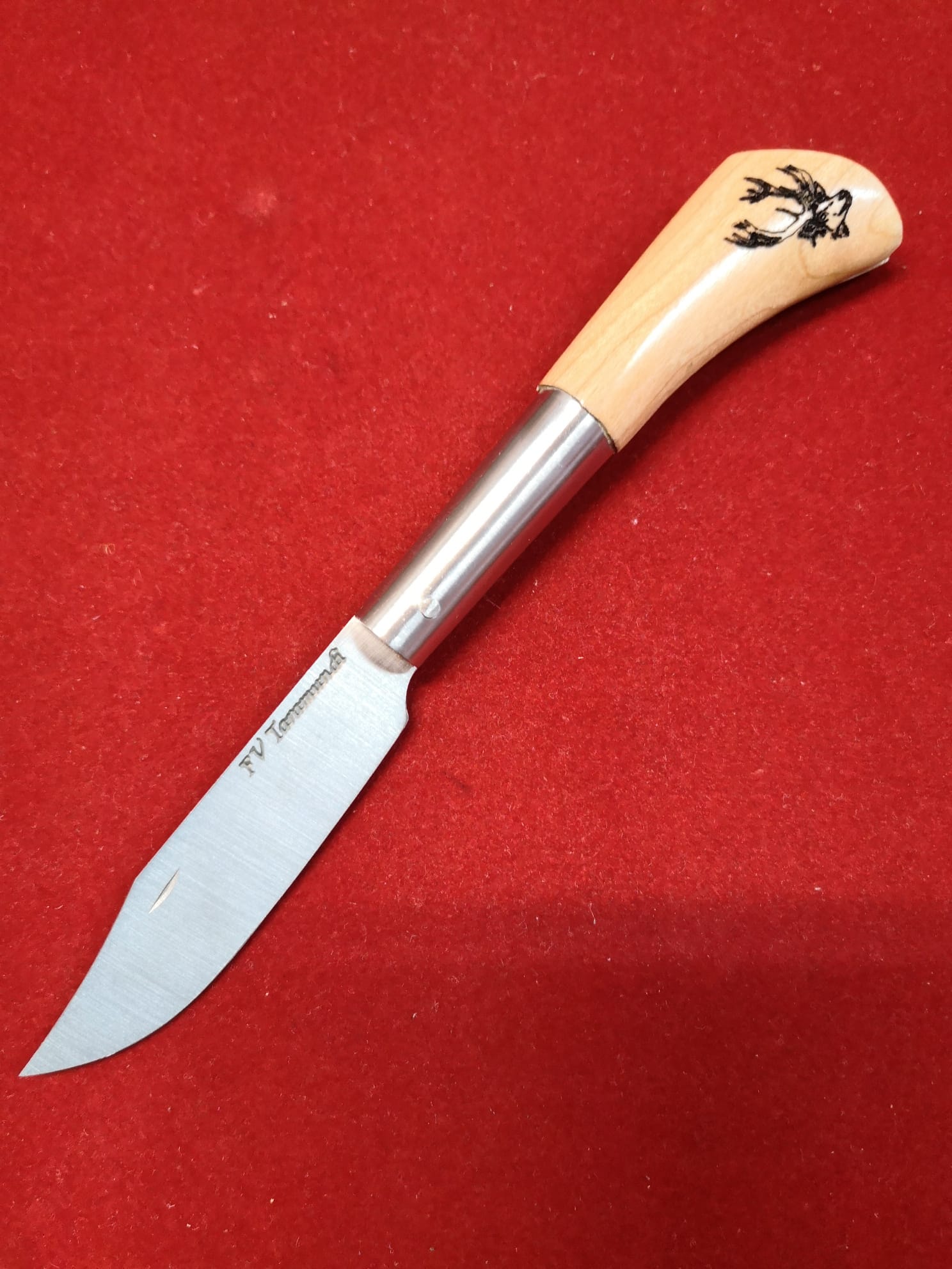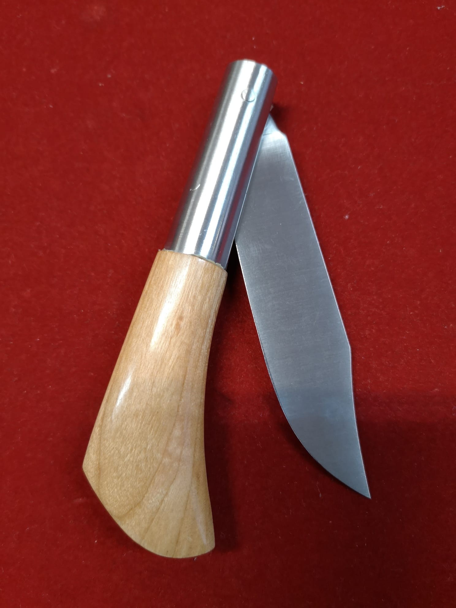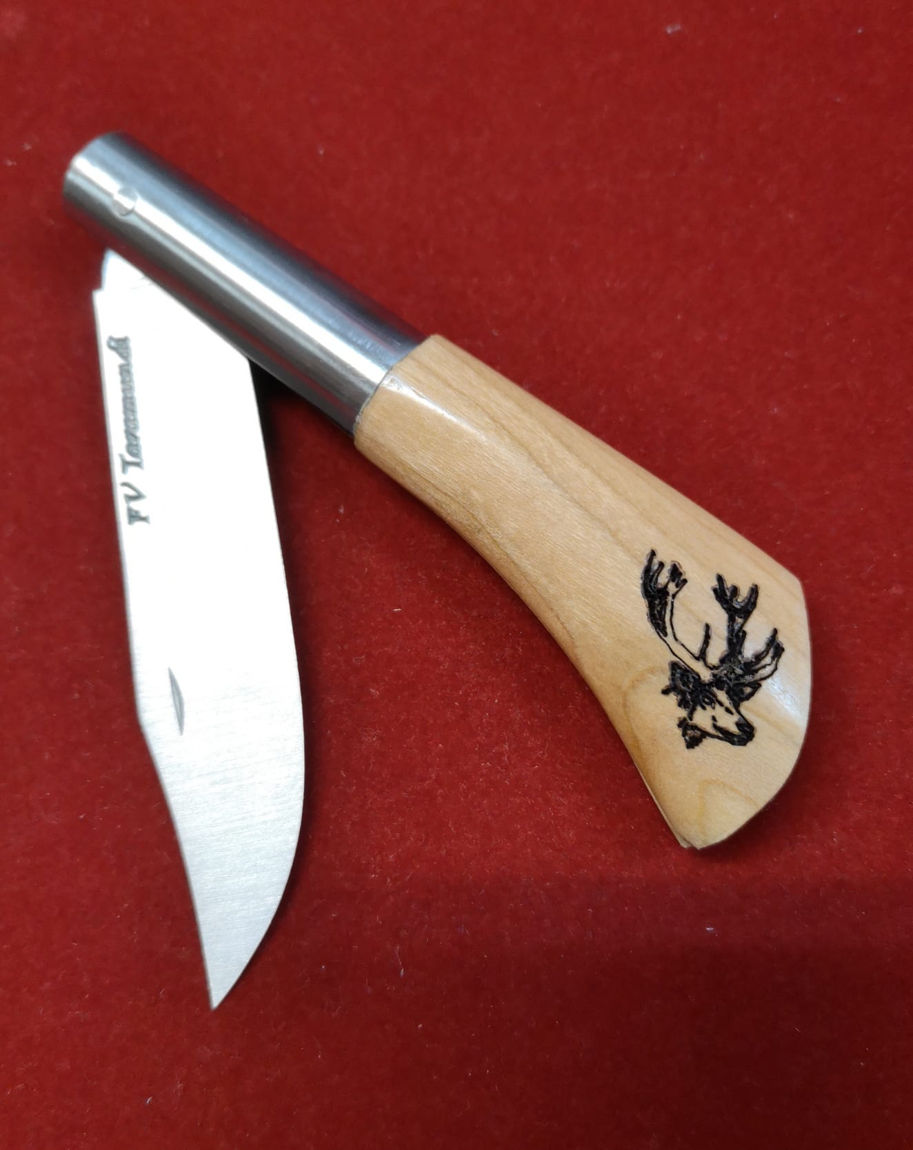 Navaja Artesana de Taramundi, Asturias, realizada manualmente por maestro artesano Francisco Vega, firmada FV en su hoja de 8 cm de punta vuelta.