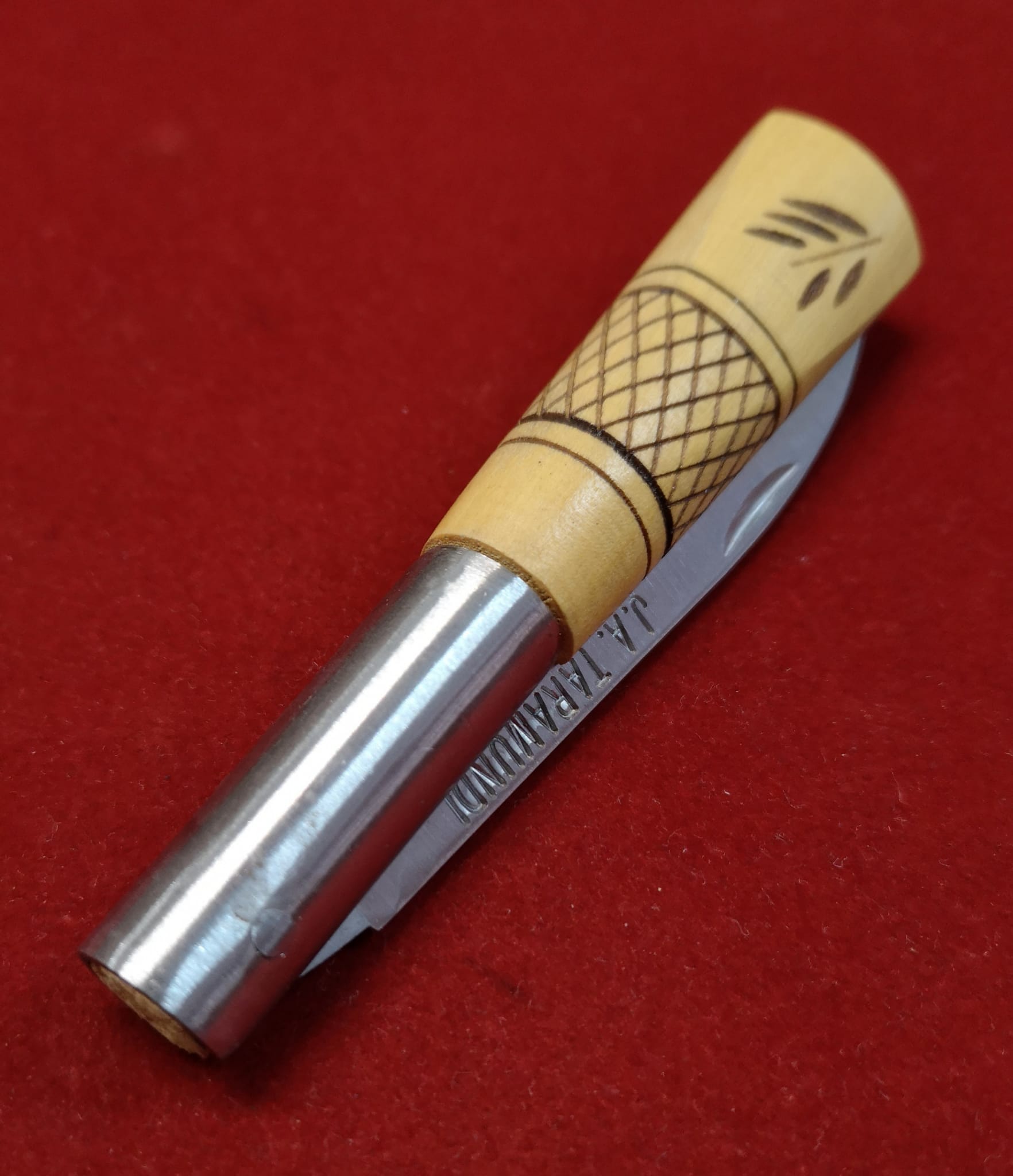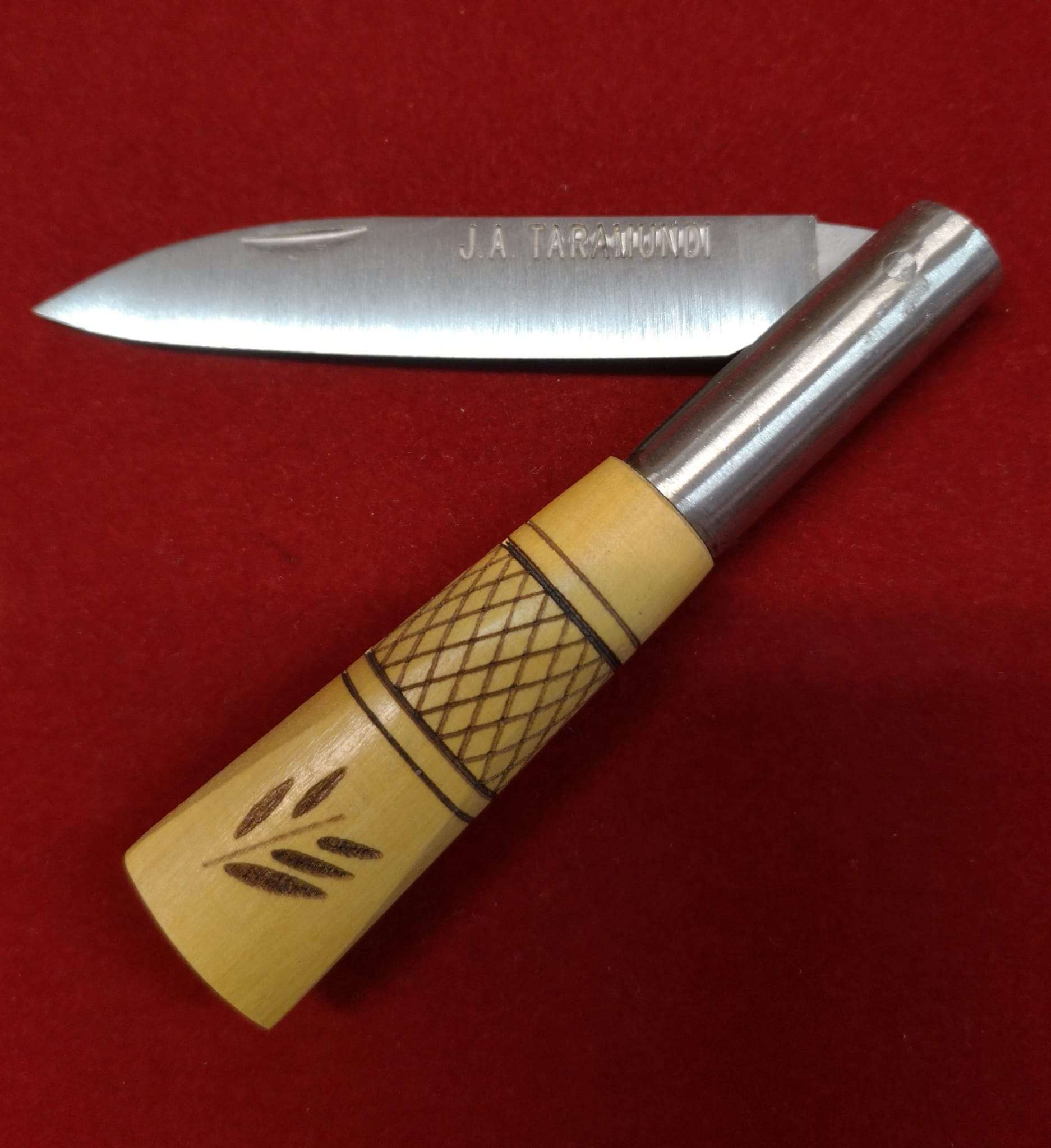 Navaja Artesana de Taramundi, Asturias, realizada manualmente por maestro artesano José Antonio, firmada J. A. Taramundi en su hoja de 8 cm.