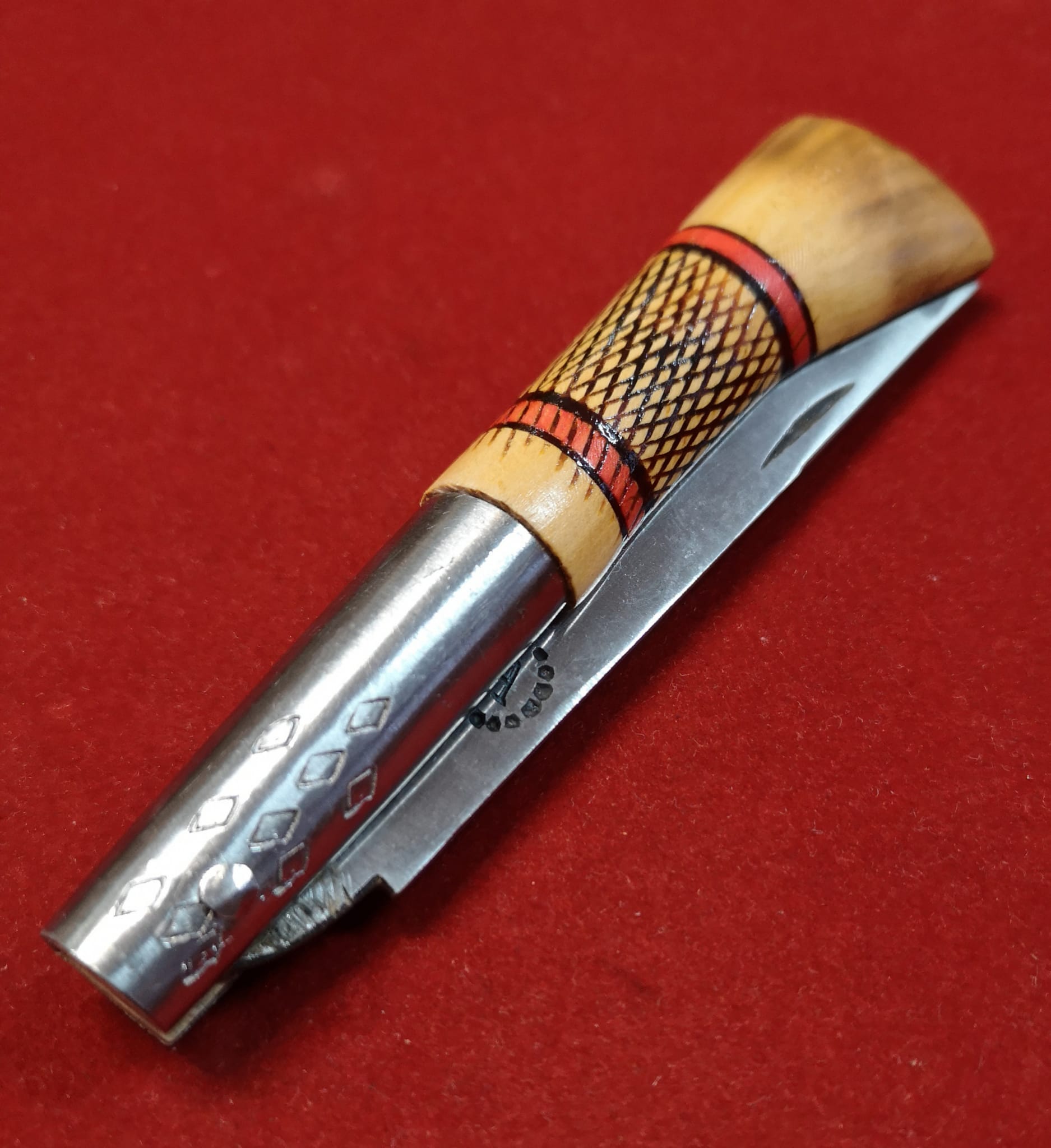 Mango en madera de boj con decoración tradicional de CRUZADILLO acabado a la goma laca.