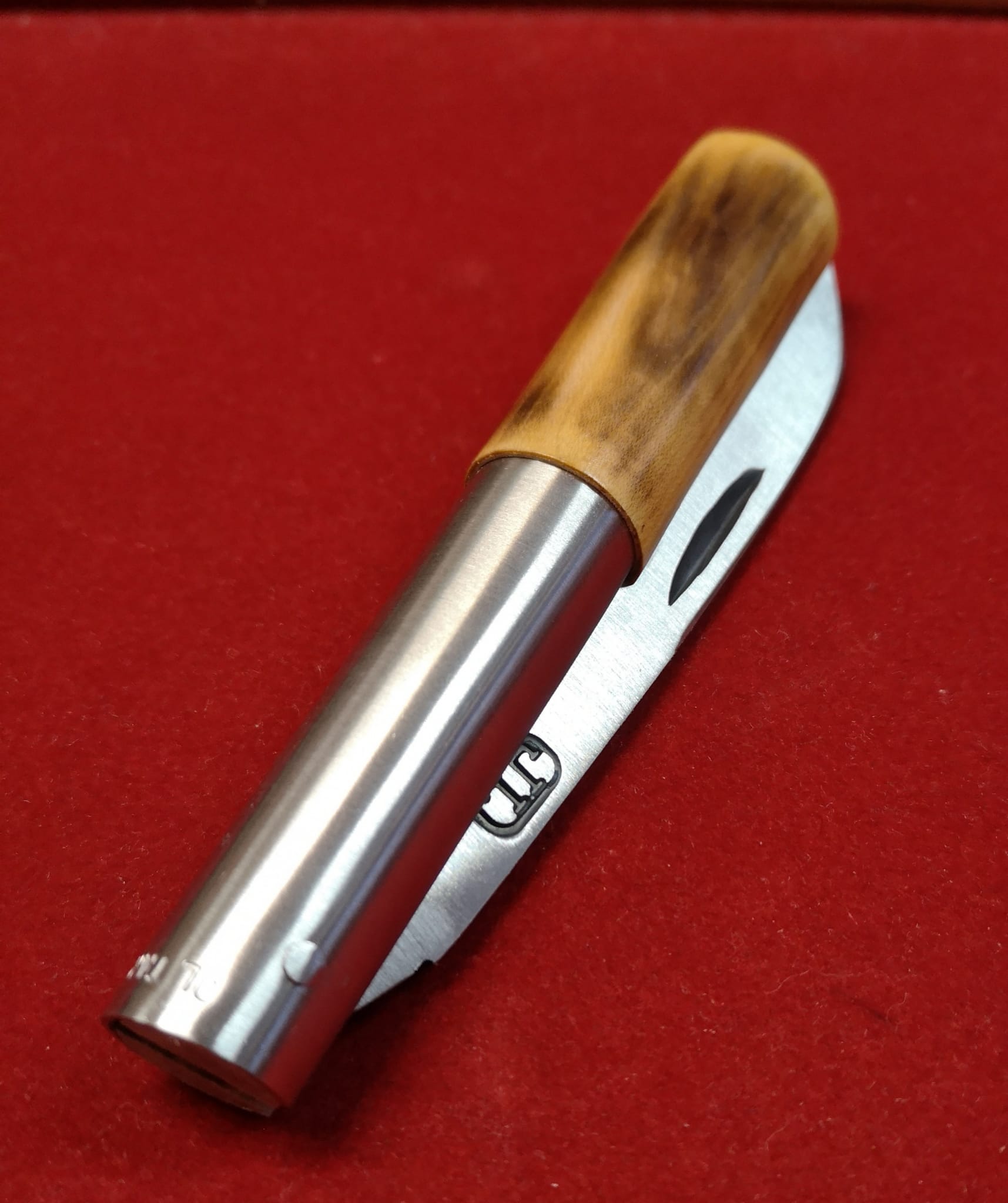 Navaja Artesana de Taramundi, Asturias, realizada manualmente por maestro artesano David Legaspi, firmada JL en su hoja de acero Inox Mova de 8 cm.
