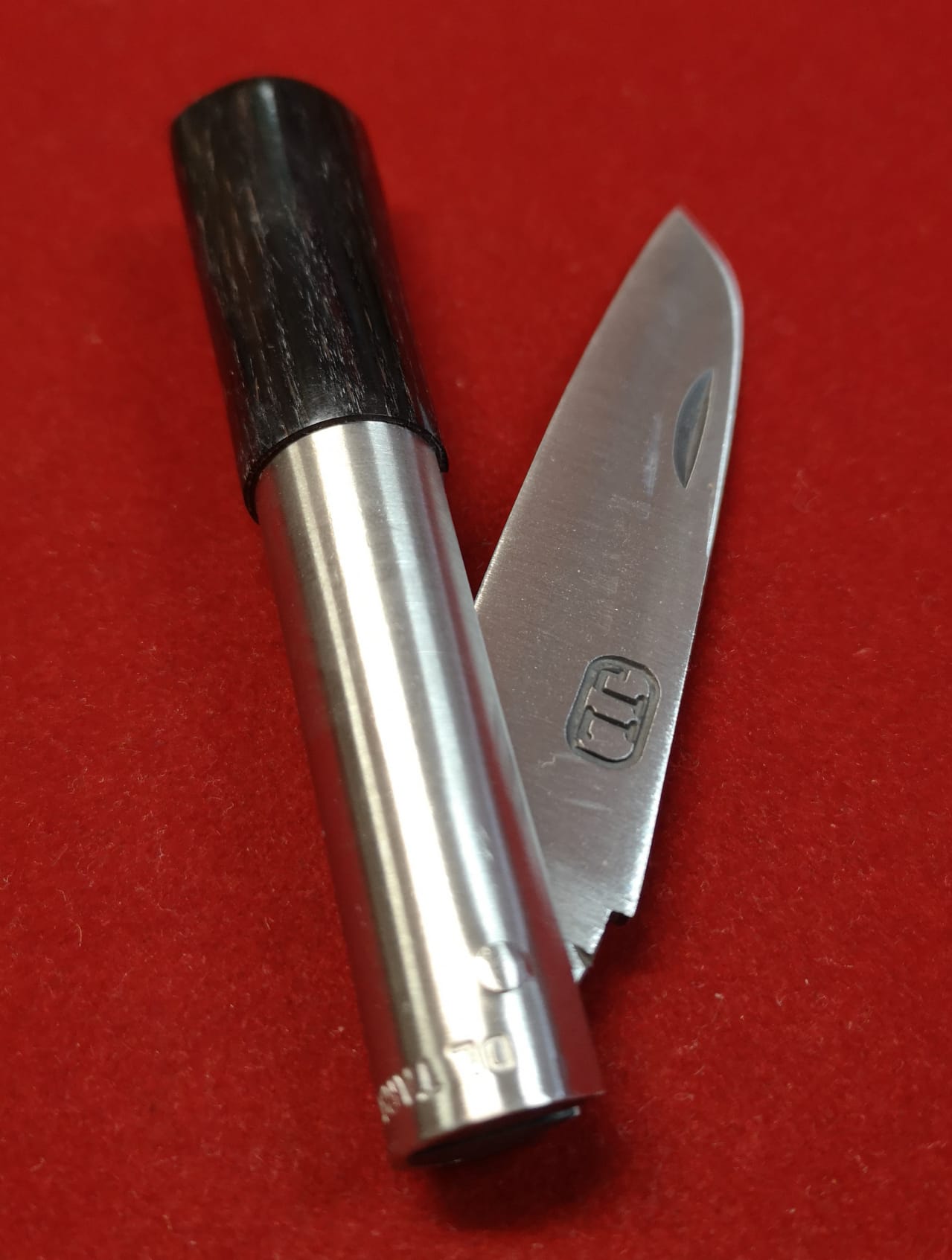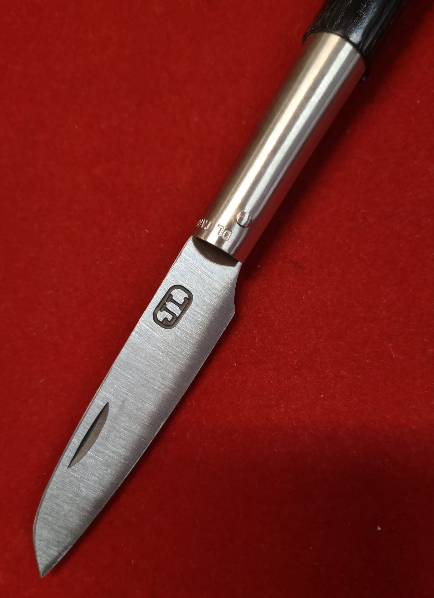 Navaja Artesana de Taramundi, Asturias, realizada manualmente por maestro artesano David Legaspi, firmada JL en su hoja de acero Inox Mova de 8 cm.