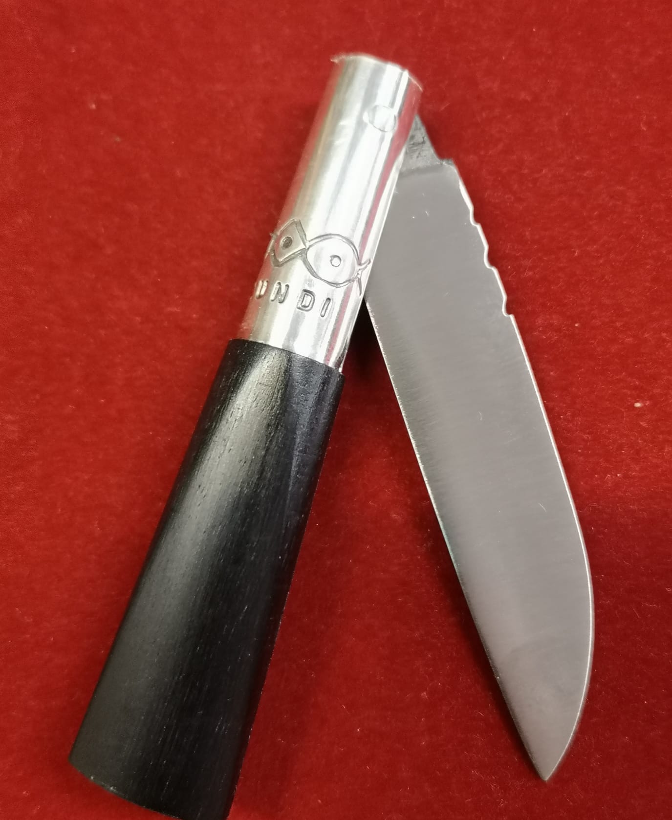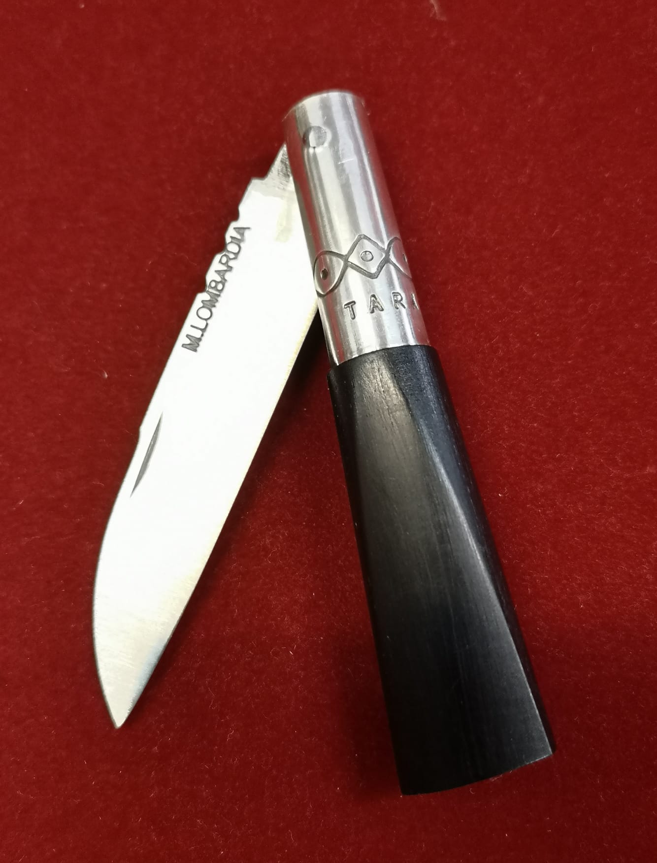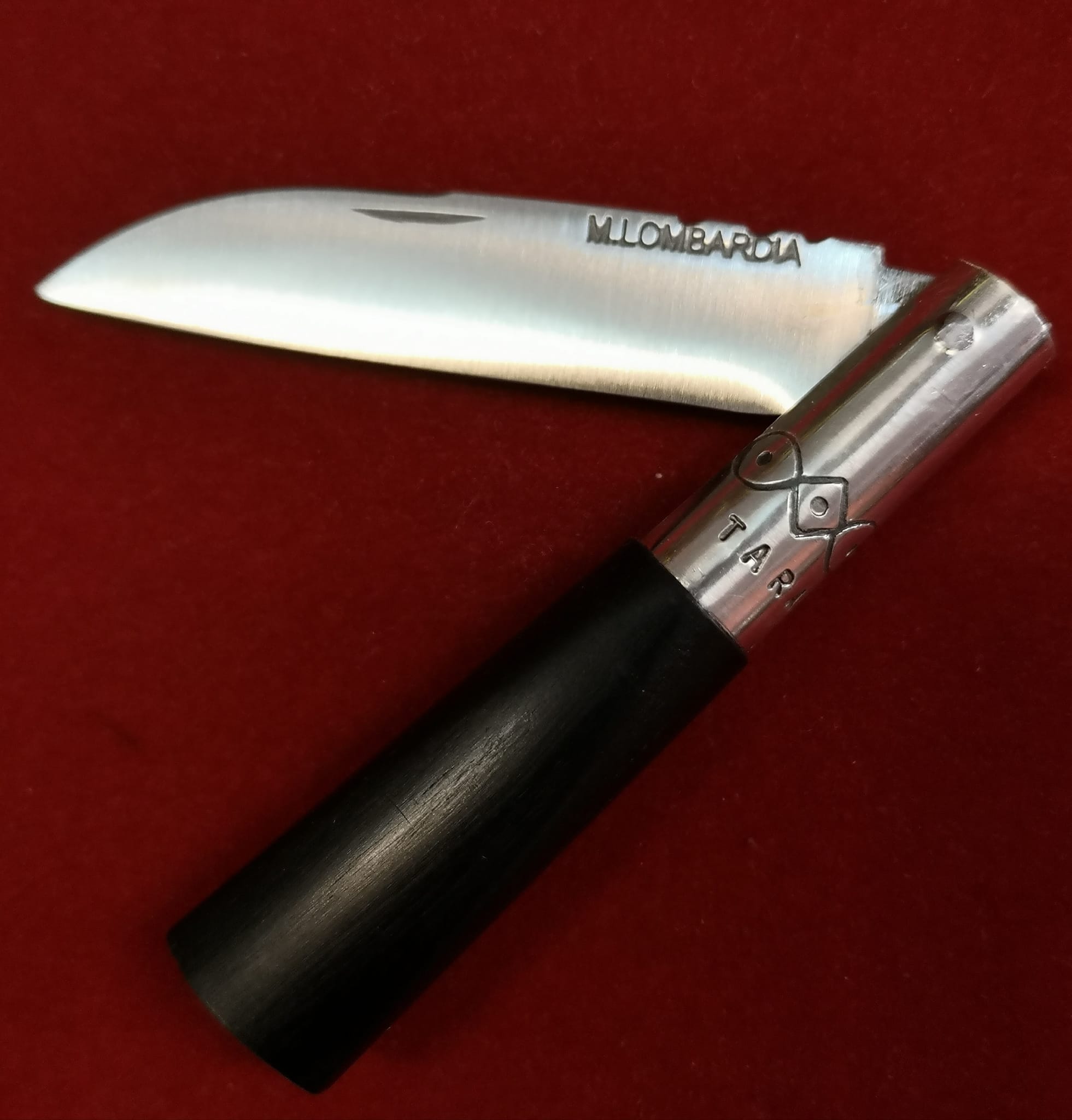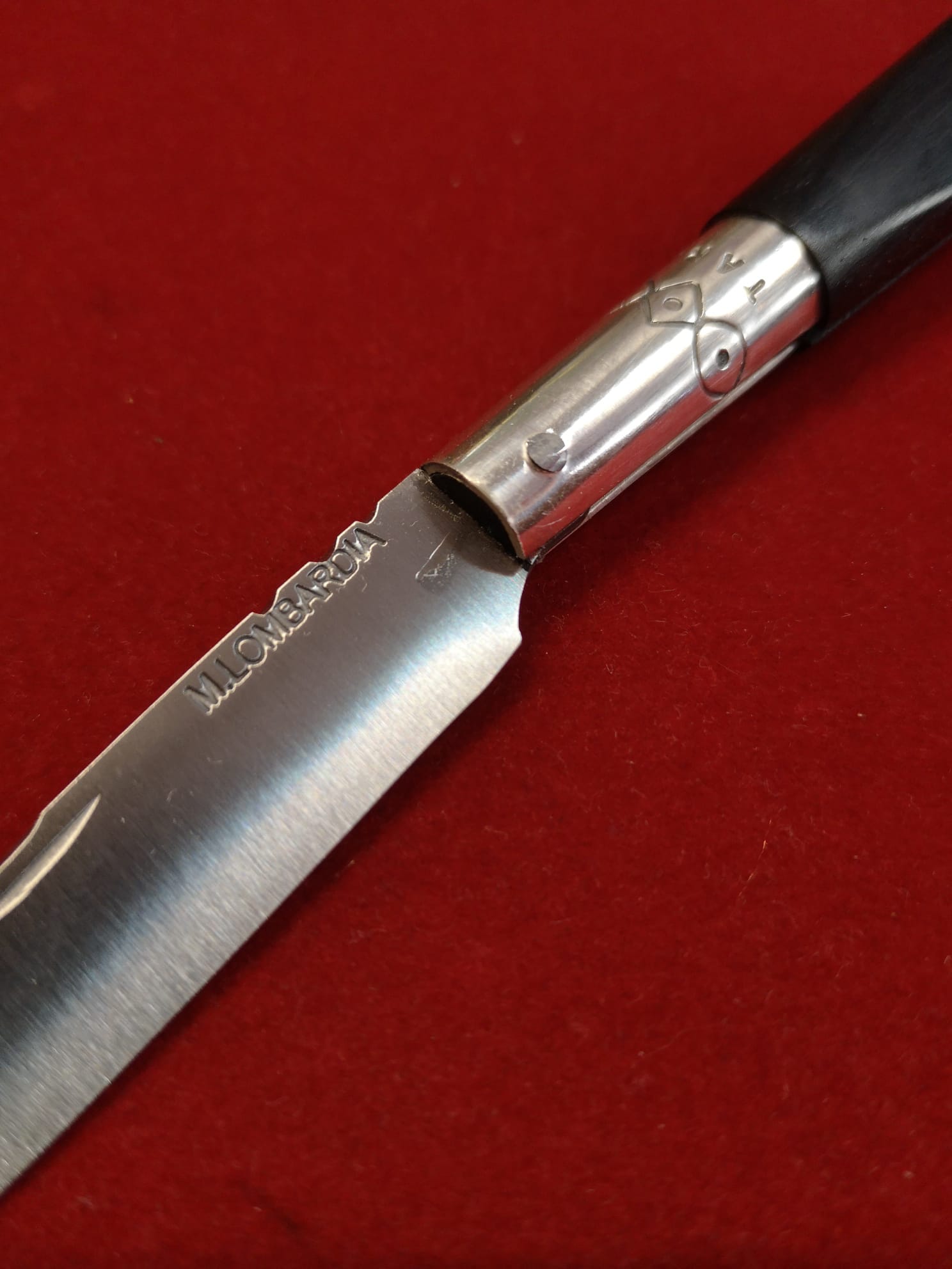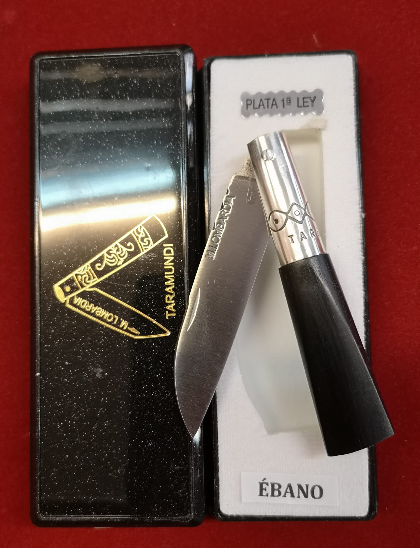 Navaja Lombardía Ébano-Plata. Navaja Artesana de Taramundi, Asturias, realizada manualmente por maestro artesano M. Lombardía firmada en su hoja de 6,3 cm.