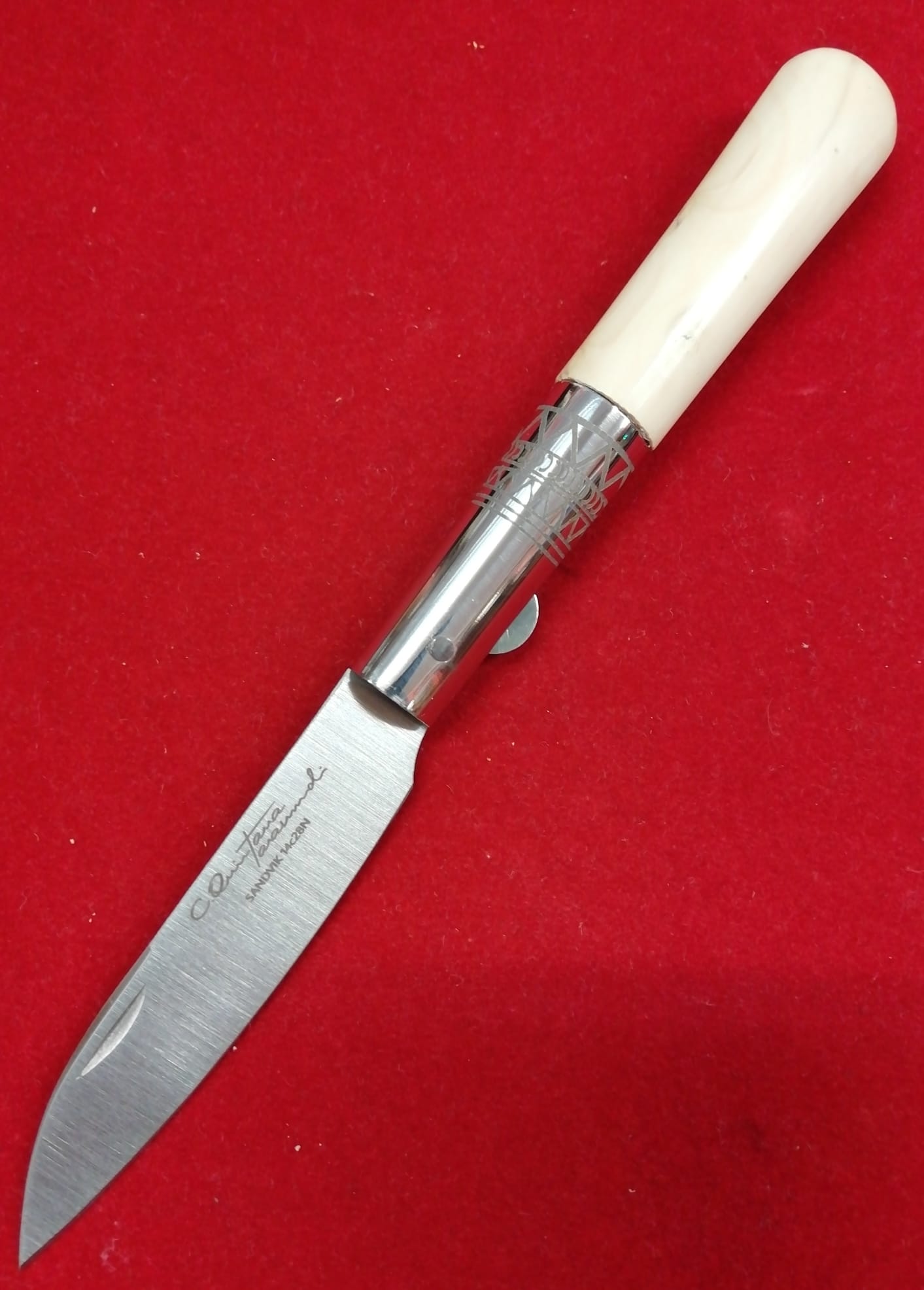 Navaja Artesana de Taramundi, Asturias, realizada manualmente por maestro artesano Carlos Quintana, firmada CQ en la hoja de 8 cm con Bloqueo.