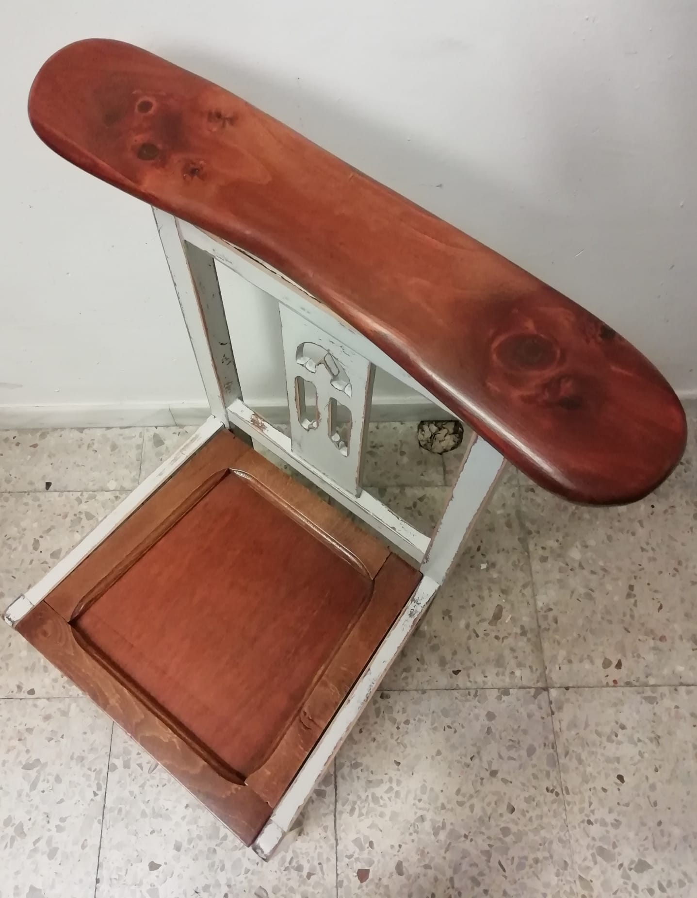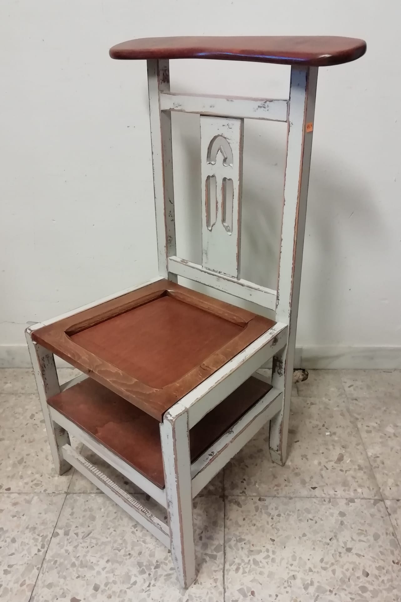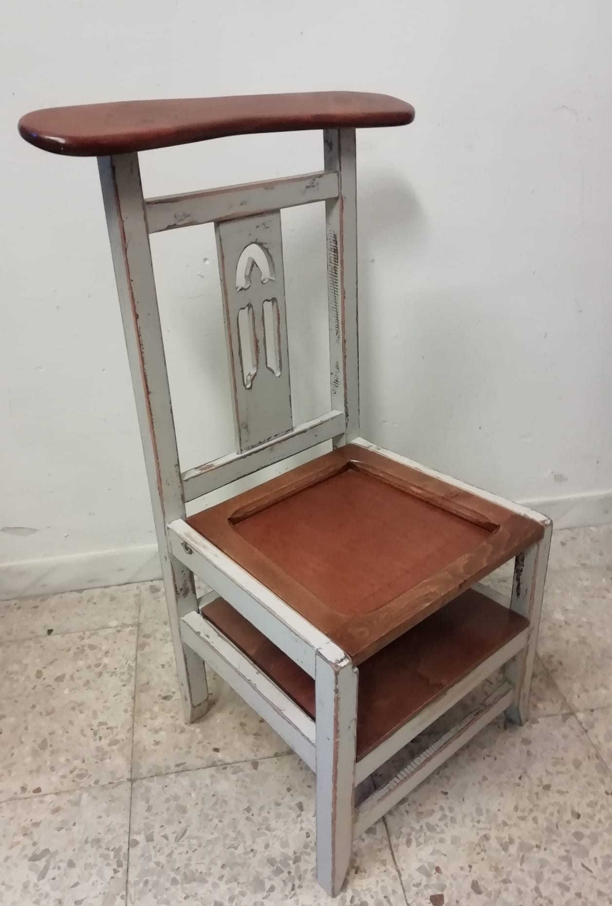 Reclinatorio antiguo restaurado en madera de haya y doble función, para sentarse y para arrodillarse.