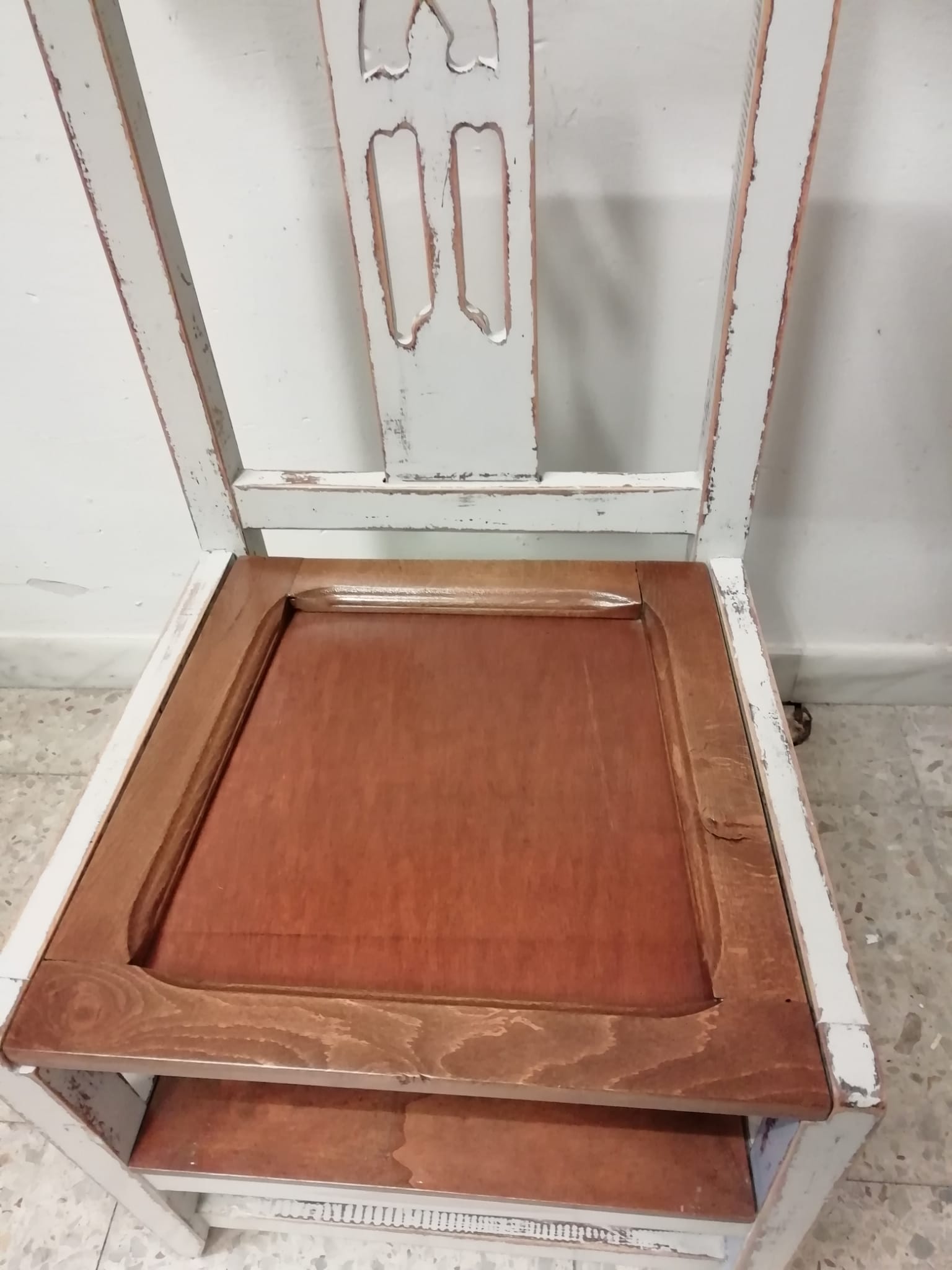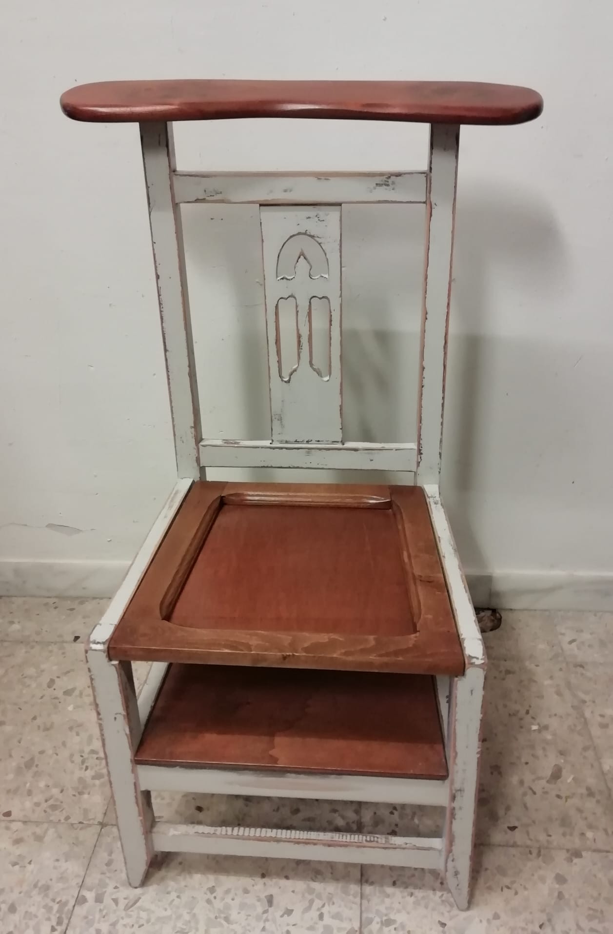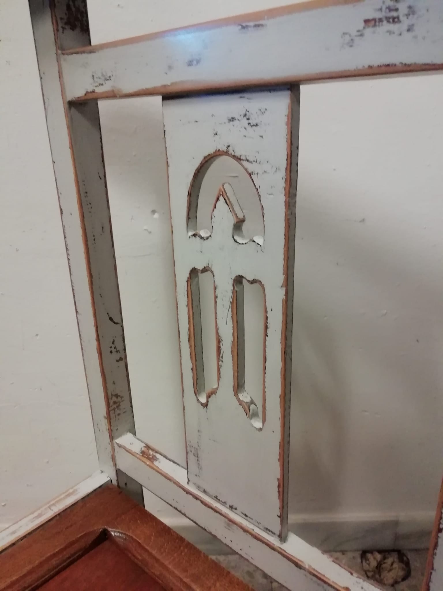 Reclinatorio antiguo restaurado en madera de haya y doble función, para sentarse y para arrodillarse.