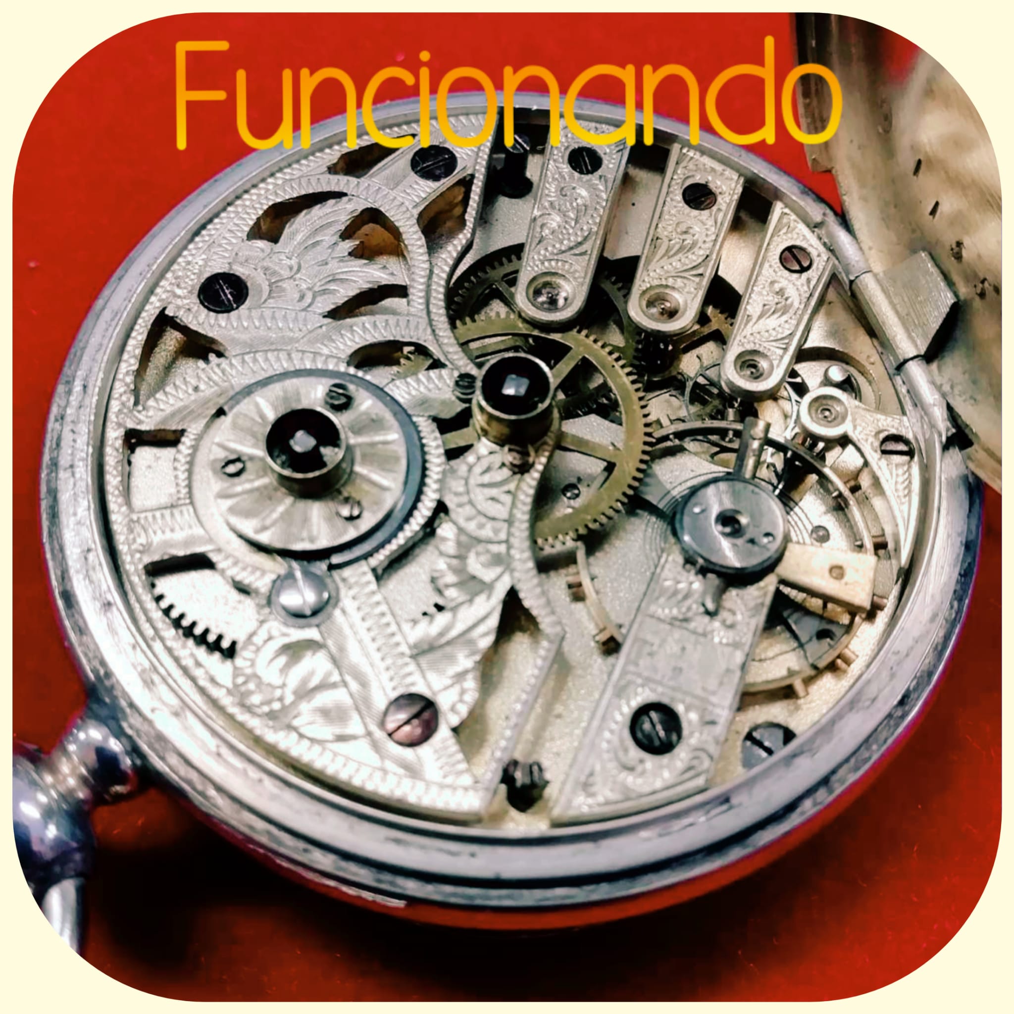 Resaltar la gran belleza de la maquinaria de este reloj, profusamente trabajanda, con escape de cola de ratón.