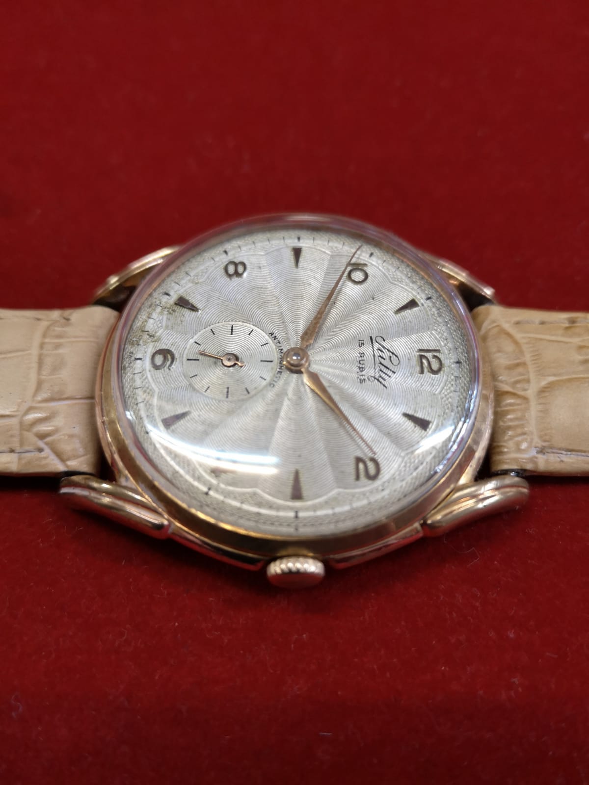 Reloj pulsera Sully chapado oro, en buen estado. Década de 1950, movimiento mecánico a cuerda manual, 15 rubís, revisado y funcionando perfectamente. perfectamente.